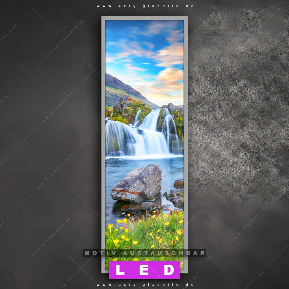 LED Acrylglasbild Canvalight® DIA | Wasserfall bei Sonnenuntergang | Schmal