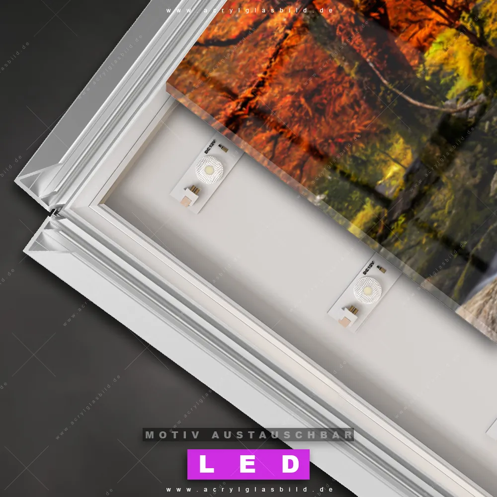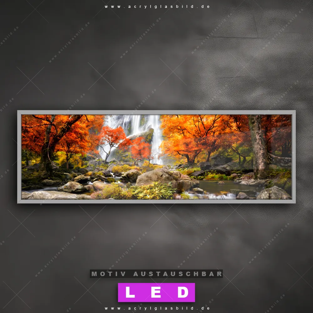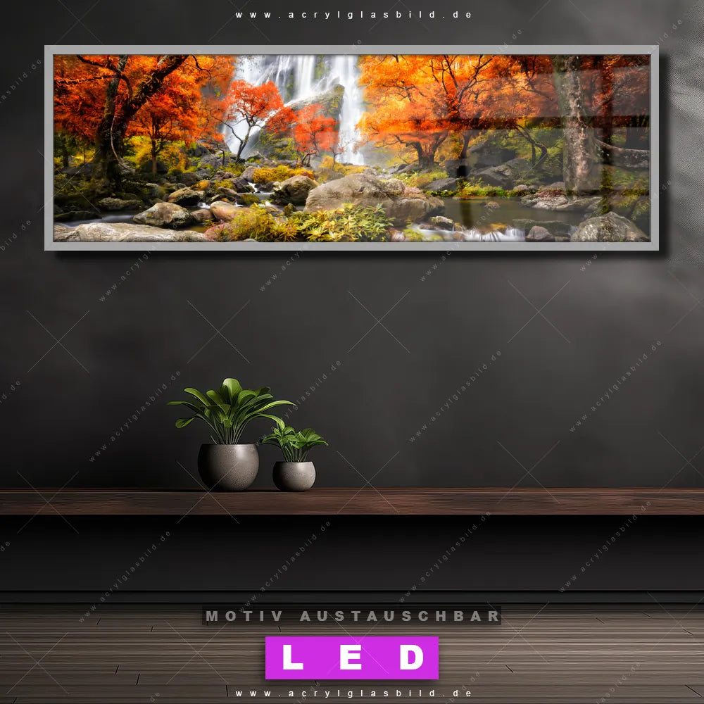LED Acrylglasbild Canvalight® DIA | Wasserfall in Herbstlandschaft | Panorama