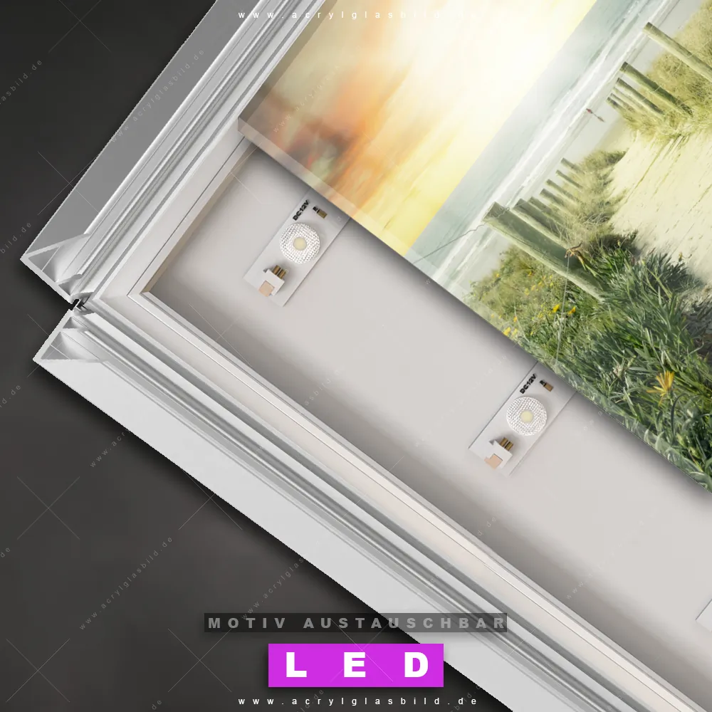 Also, worauf wartest du noch? Gib mit einem beleuchteten Wandbild mit wechselbarer Acrylglas-Scheibe deinen Wänden das gewisse Etwas und bestelle jetzt das LED Acrylglasbild Canvalight® DIA Küstenweg mit Muscheln – dein Zuhause wird es dir danken und deine Freunde werden dank der wechselbaren Motive erblassen!