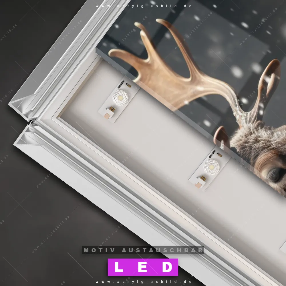 Du suchst nach einem Wandbild mit LED Beleuchtung als ultimativen Hingucker für deine Wände? Dann haben wir das perfekte dimmbare LED Bild mit Fernbedienung und optionaler Farbtemperatursteuerung für dich: unser abgefahrenes Winter, Tierwelt Canvalight® DIA LED Acrylglasbild! Mit dem LED Leuchtbild aus Acrylglas Weihnachtsmann füttert Rentier im Hochformat mit austauschbarer bedruckter Acrylglas-Scheibe bringst du nicht nur Licht, sondern auch ordentlich Stil in deine Bude.