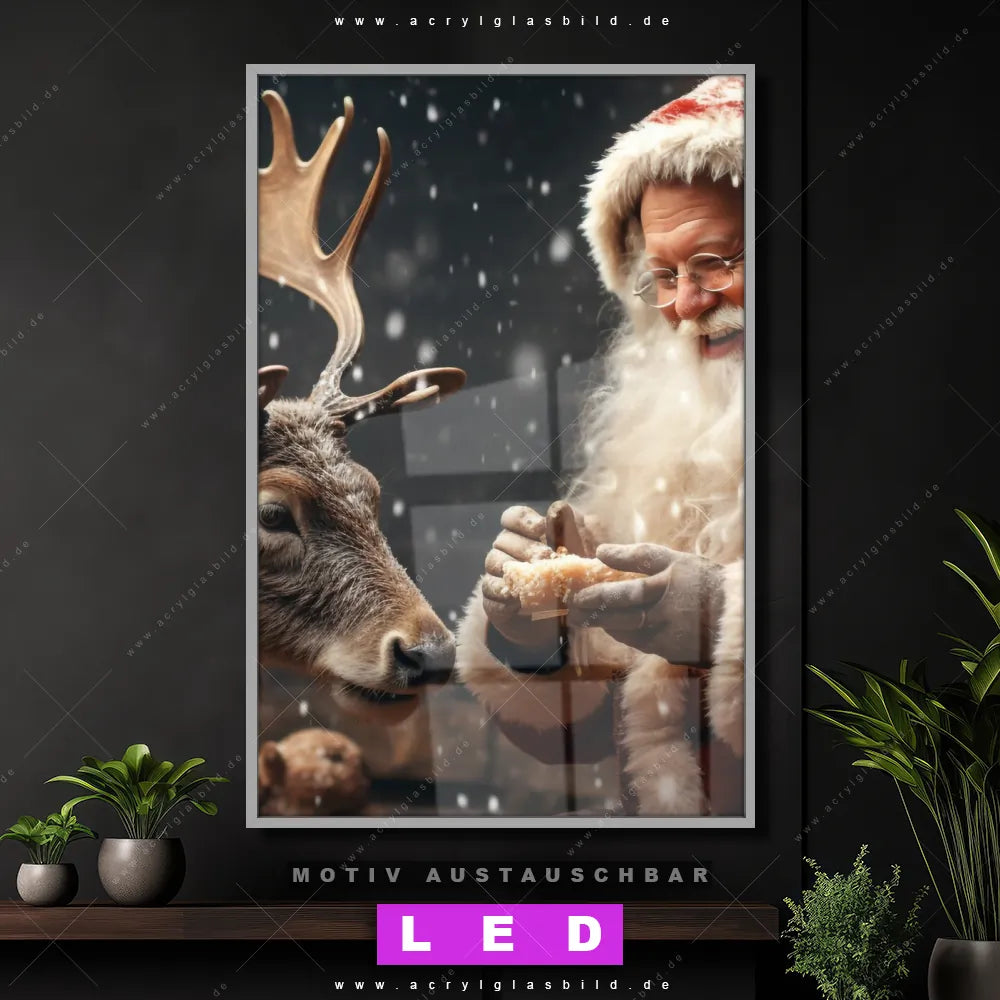 LED Acrylglasbild Canvalight® DIA | Weihnachtsmann füttert Rentier | Hochformat