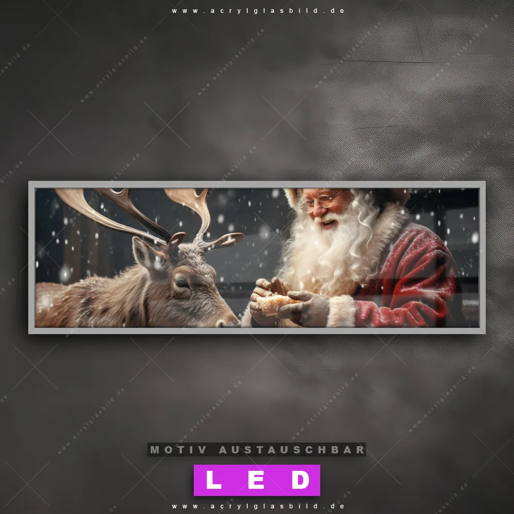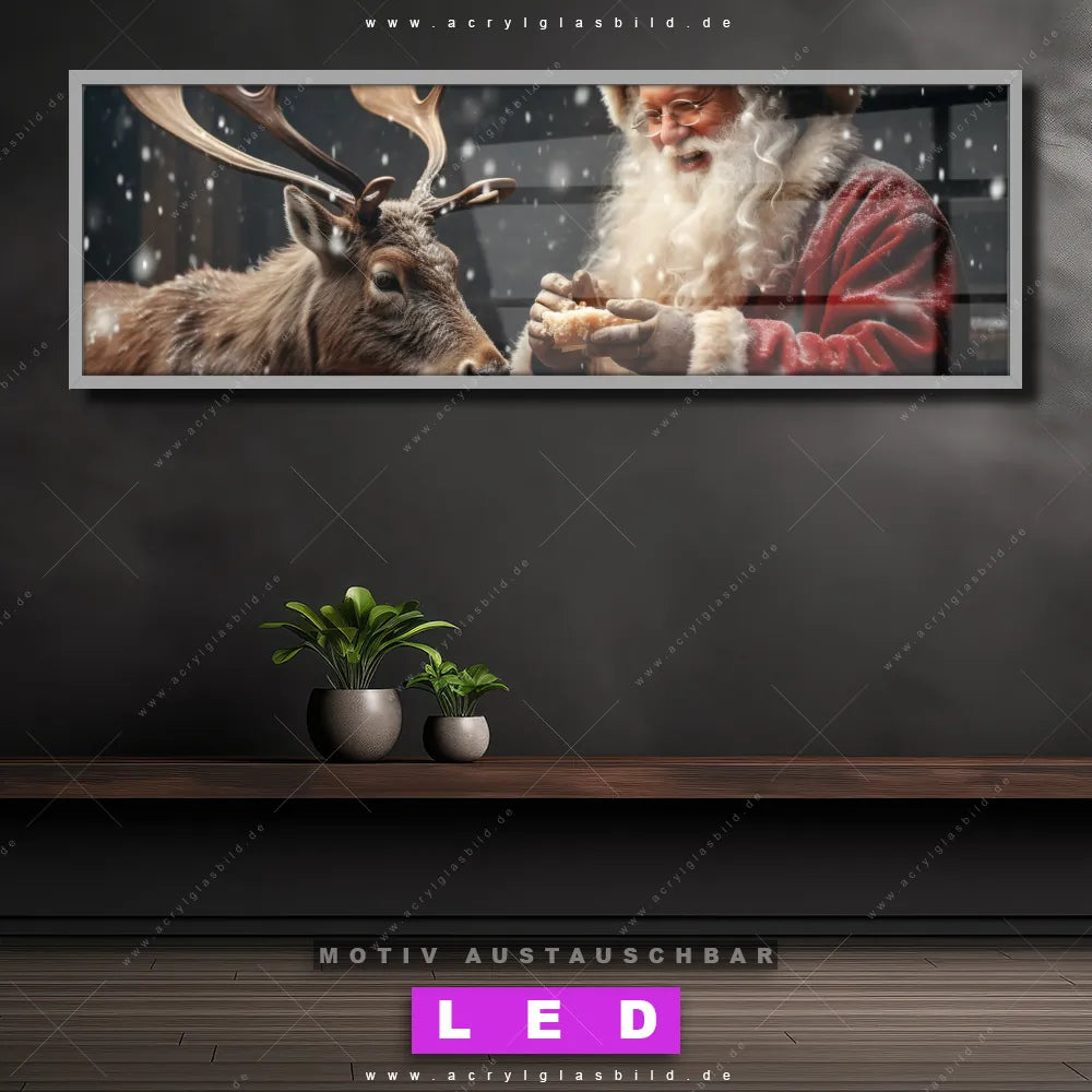LED Acrylglasbild Canvalight® DIA | Weihnachtsmann füttert Rentier | Panorama