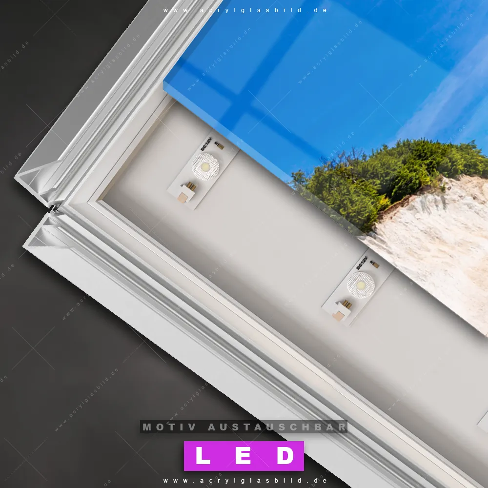 Du suchst nach einem Wandbild mit LED Beleuchtung als ultimativen Hingucker für deine Wände? Dann haben wir das perfekte dimmbare LED Bild mit Fernbedienung und optionaler Farbtemperatursteuerung für dich: unser abgefahrenes Strand - Meer, Landschaften Canvalight® DIA LED Acrylglasbild! Mit dem LED Leuchtbild aus Acrylglas Weiße Kreidefelswand am Meer im Hochformat mit austauschbarer bedruckter Acrylglas-Scheibe bringst du nicht nur Licht, sondern auch ordentlich Stil in deine Bude.