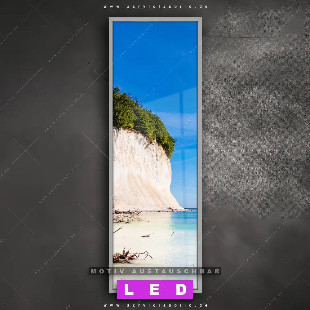 LED Acrylglasbild Canvalight® DIA | Weiße Kreidefelswand am Meer | Schmal