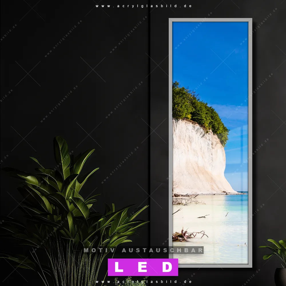 Bist du bereit, deine Wände mit einem dimmbaren LED Bild mit Fernbedienung und optionaler Farbtemperatursteuerung auf das nächste Level zu bringen? Unser Strand - Meer, Landschaften Canvalight® DIA LED Acrylglasbild ist genau das, was du brauchst! Das Wandbild mit LED Beleuchtung im Schmalen Format mit austauschbarer bedruckter Acrylglas-Scheibe Weiße Kreidefelswand am Meer bringt Licht und Stil in dein Zuhause – und das in null Komma nichts!