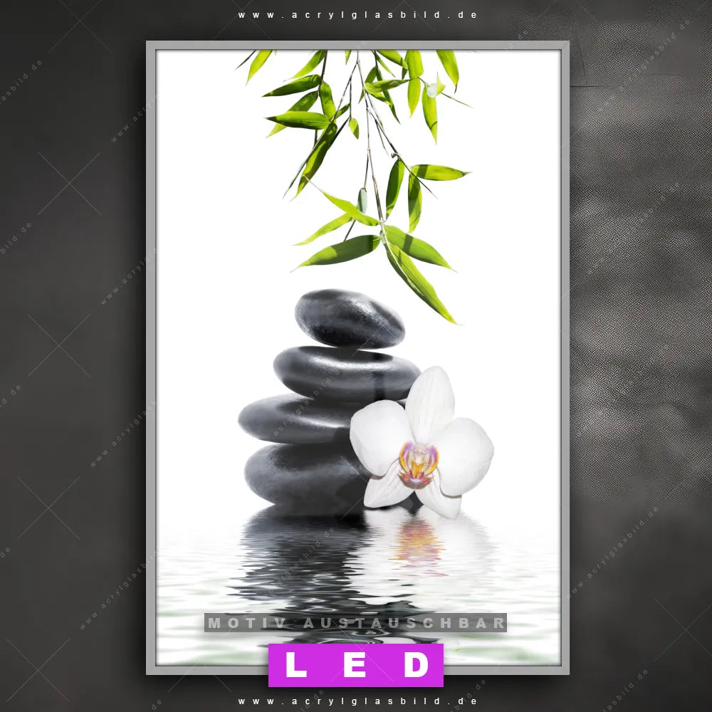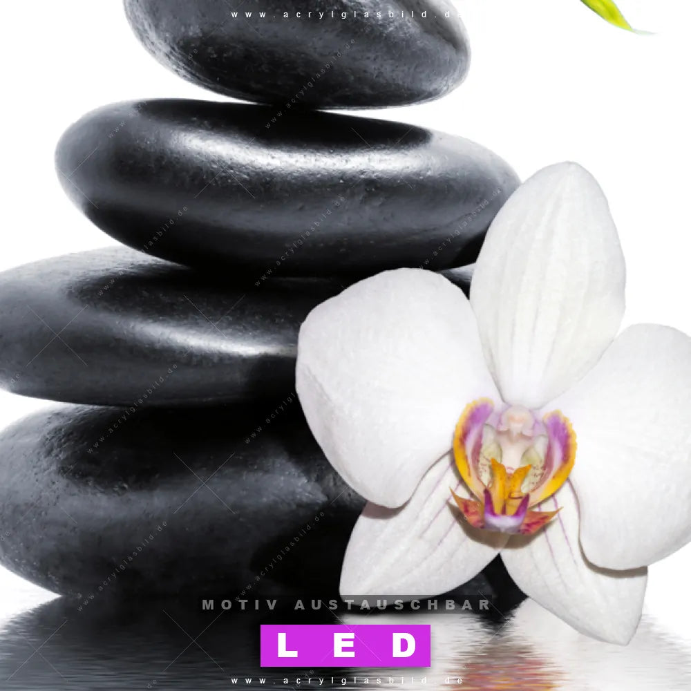 Du suchst nach einem Wandbild mit LED Beleuchtung als ultimativen Hingucker für deine Wände? Dann haben wir das perfekte dimmbare LED Bild mit Fernbedienung und optionaler Farbtemperatursteuerung für dich: unser abgefahrenes Buddha - Feng Shui, Blumen - Botanik Canvalight® DIA LED Acrylglasbild! Mit dem LED Leuchtbild aus Acrylglas Weiße Orchidee & Zensteine im Hochformat mit austauschbarer bedruckter Acrylglas-Scheibe bringst du nicht nur Licht, sondern auch ordentlich Stil in deine Bude.