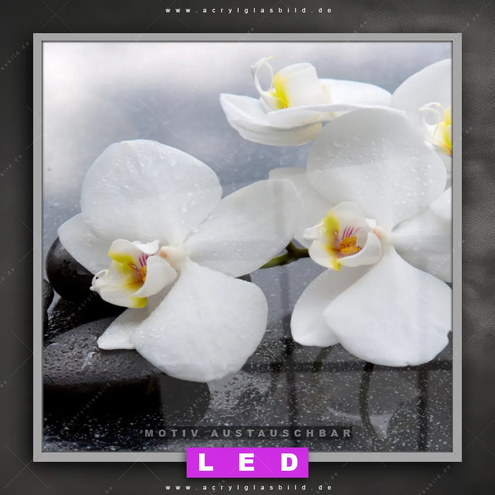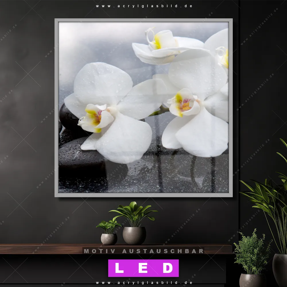 Bist du bereit, deine Wände mit einem dimmbaren LED Bild mit Fernbedienung und optionaler Farbtemperatursteuerung zum Leuchten zu bringen? Wir haben das ultimative Blumen - Botanik, Buddha - Feng Shui LED Acrylglasbild Canvalight® DIA für dich! Unser LED Wandbild aus Acrylglas Weiße Orchideen im Quadratischen Format mit austauschbarer bedruckter Acrylglas-Scheibe im DIA-Klapprahmen bringt sofort jede Menge Glanz in deine vier Wände.