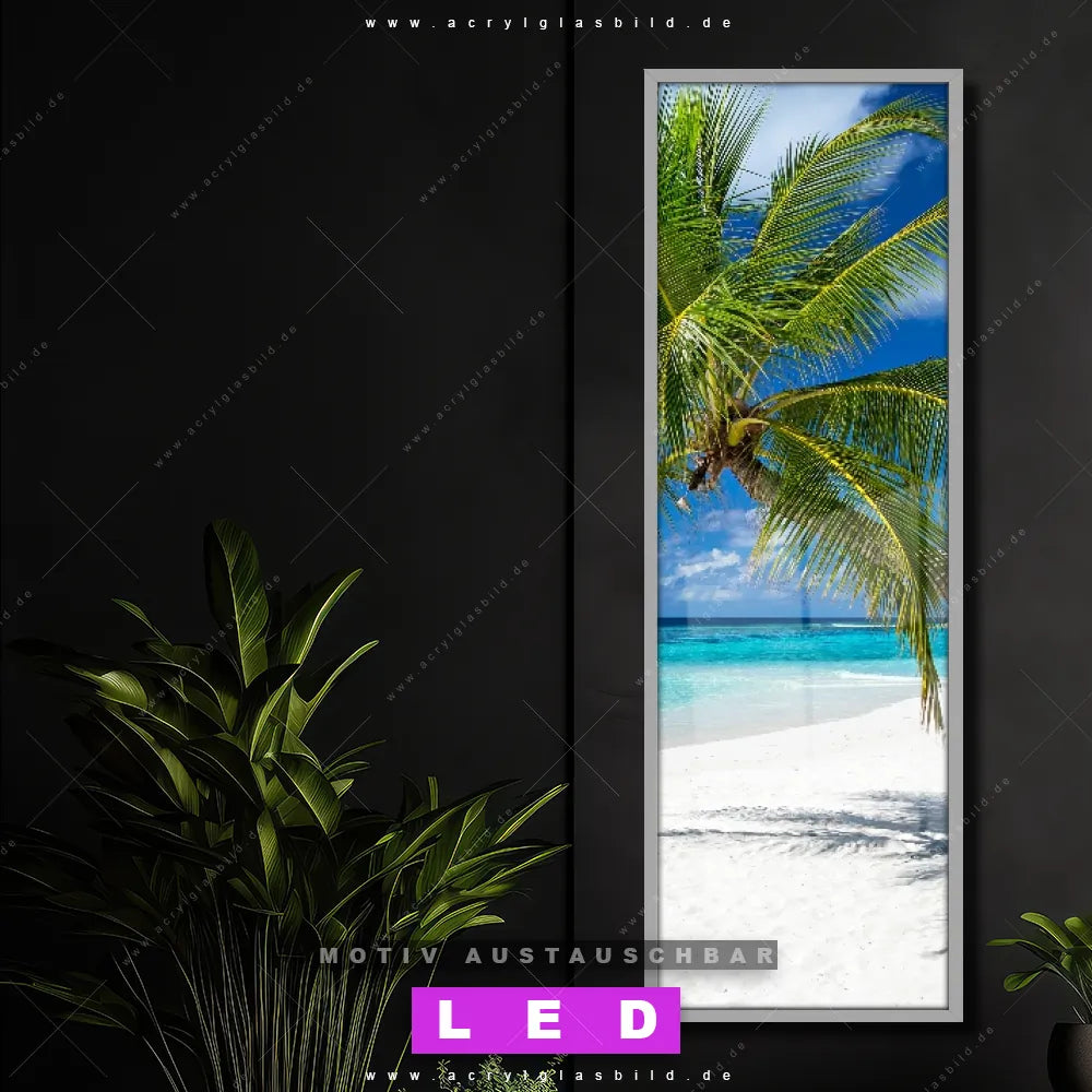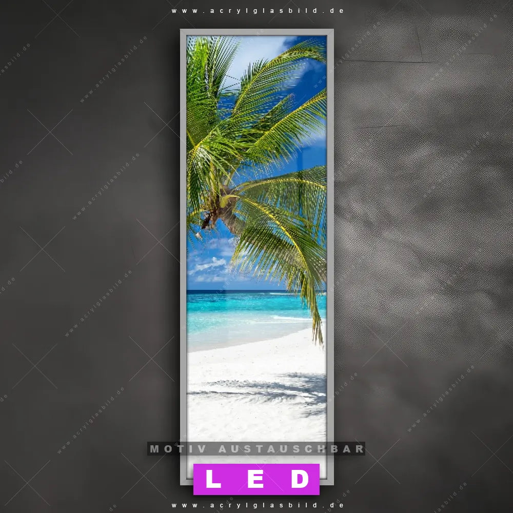 LED Acrylglasbild Canvalight® DIA | Weißer Strand & Kokospalme | Schmal