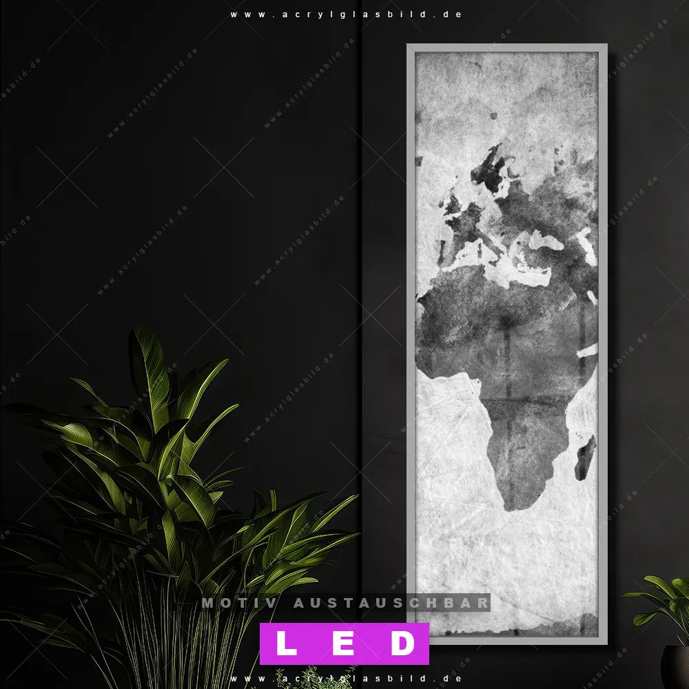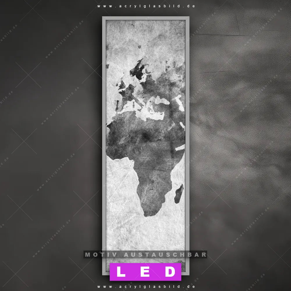 LED Acrylglasbild Canvalight® DIA | Weltkarte Grautöne | Schmal