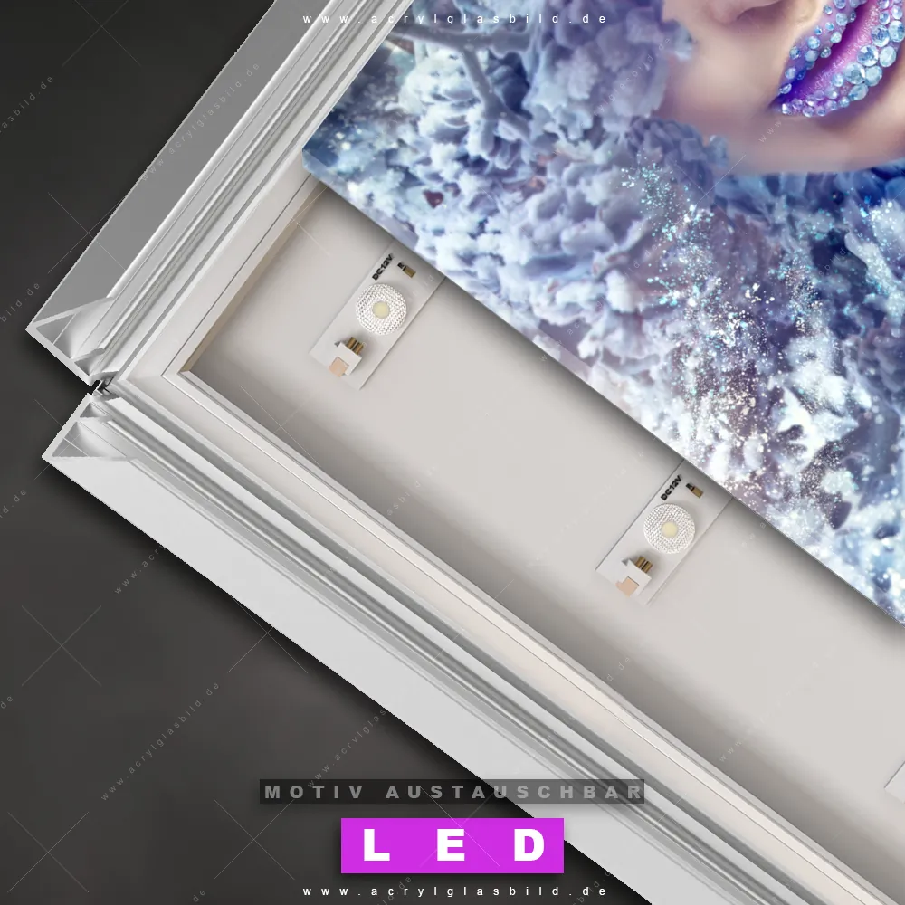 Also, worauf wartest du noch? Gib mit einem beleuchteten Wandbild mit wechselbarer Acrylglas-Scheibe deinen Wänden das gewisse Etwas und bestelle jetzt das LED Acrylglasbild Canvalight® DIA eisige Schönheit – dein Zuhause wird es dir danken und deine Freunde werden dank der wechselbaren Motive erblassen!