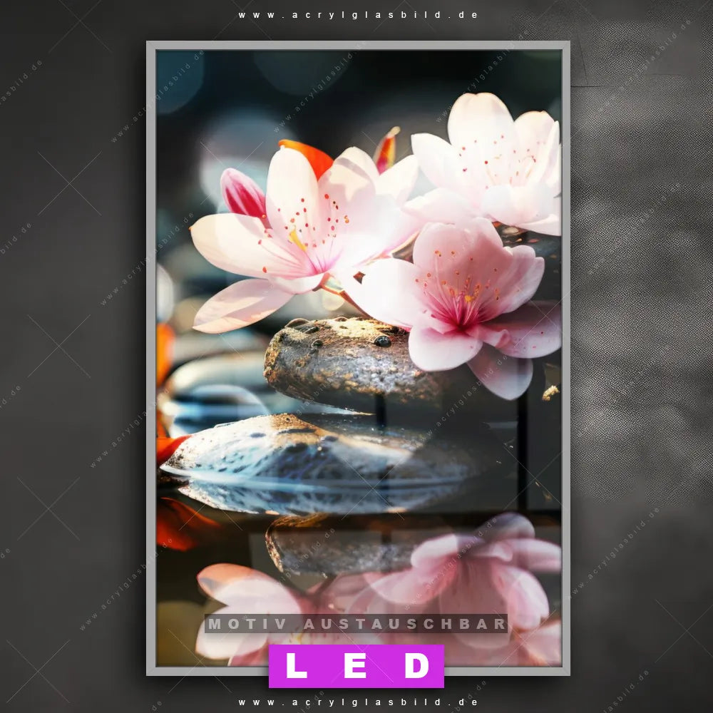 LED Acrylglasbild Canvalight® DIA | Zen Steine mit Blumen | Hochformat