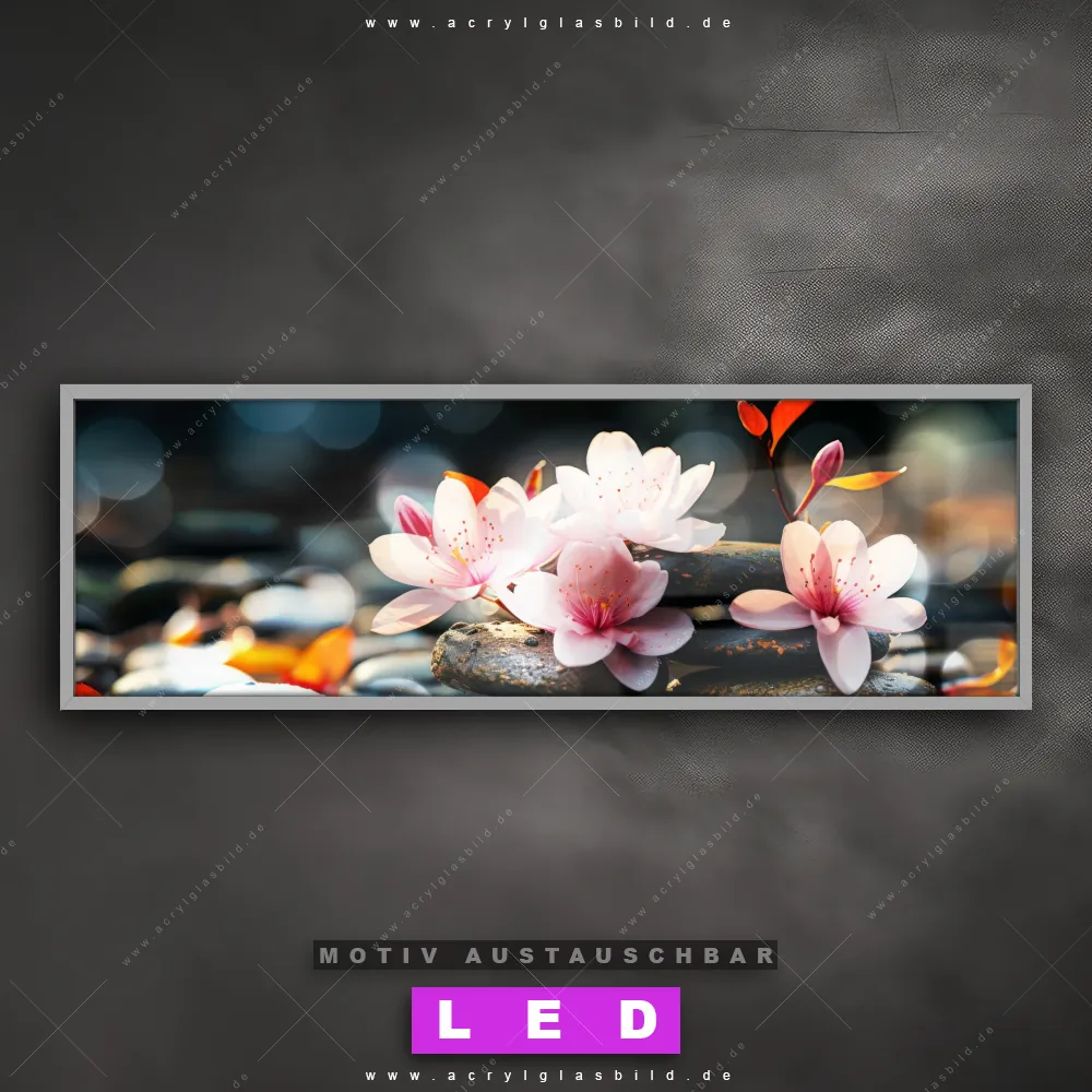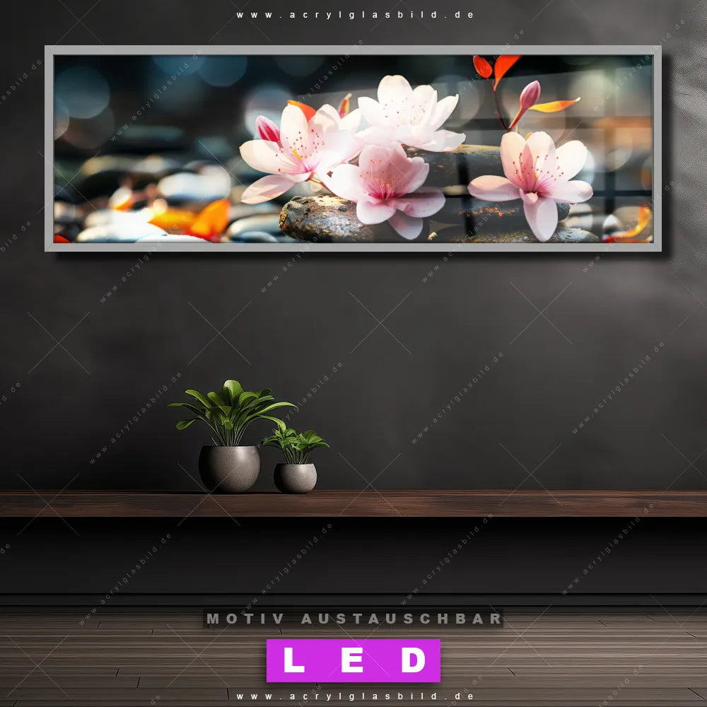 Deine Wände könnten dringend ein dimmbares LED Bild mit Fernbedienung und optionaler Farbtemperatursteuerung gebrauchen? Dann haben wir das perfekte Wandbild mit LED Beleuchtung für dich: unser mega-cooles Blumen - Botanik, Buddha - Feng Shui Canvalight® DIA LED Acrylglasbild! Mit unserem angesagten Leuchtbild aus Acrylglas im Panorama-Format und der austauschbaren bedruckten Acrylglas-Scheibe Zen Steine mit Blumen bringst du nicht nur Licht, sondern auch jede Menge Flair in deine Räume.