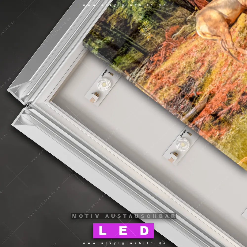 Also, worauf wartest du noch? Verwandle deine Wände mit einem LED Leuchtbild in wahre Kunstwerke und bestelle jetzt das Canvalight® DIA LED Acrylglasbild Wild am Ufer eines Baches. Deine Wände werden strahlen, und deine Freunde werden dank der wechselbaren Motive staunen!