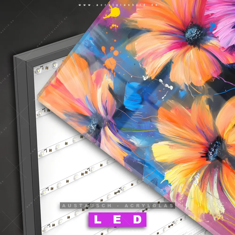 Begriffe wie Blumen, Pflanze, Natur, Blüten, Blumenwiese haben dich auf der Suche nach deinem neuen Austausch-Acrylglasbild inspiriert? Dann sollte das Wechsel-Acrylglasbild Farbenexplosion der Blüten für dein bereits vorhandenes LED Acrylglasbild Canvalight® DIA den Weg zu dir finden.