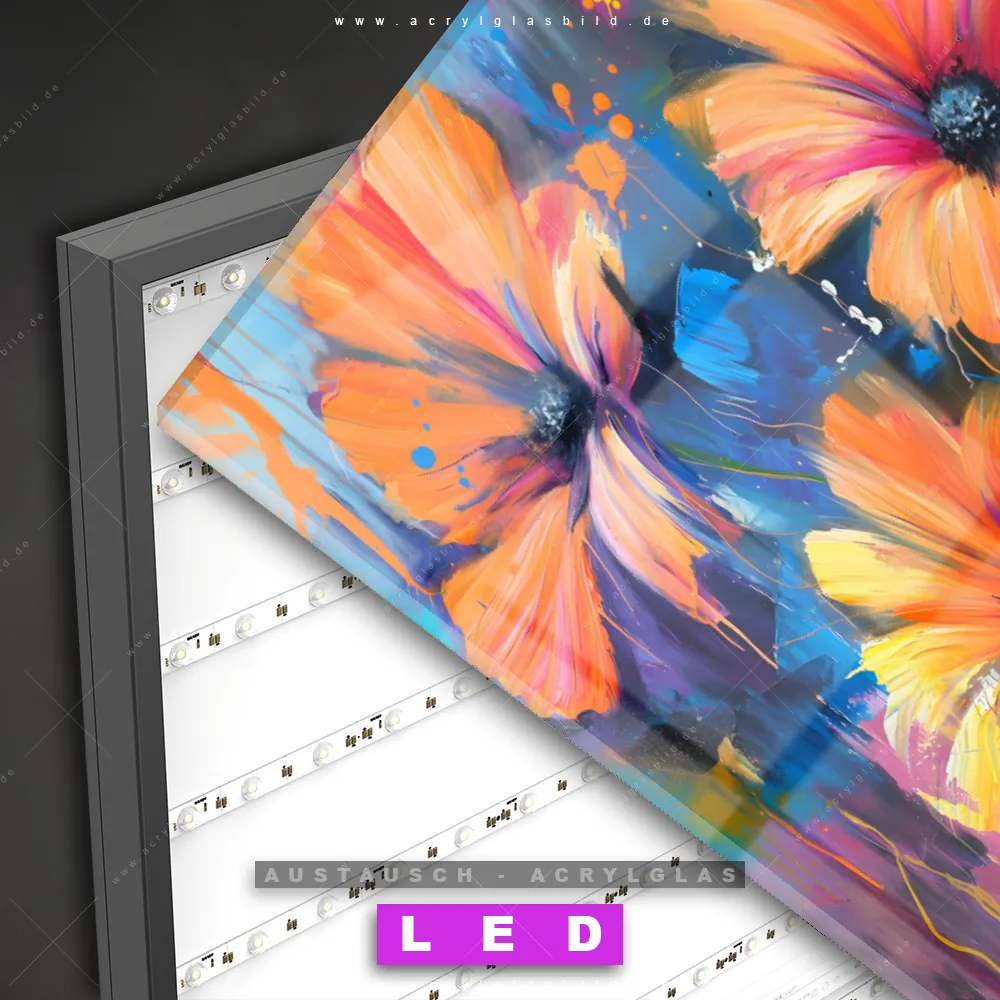 Begriffe wie Blumen, Pflanze, Natur, Blüten, Blumenwiese haben dich auf der Suche nach deinem neuen Austausch-Acrylglasbild inspiriert? Dann sollte das Wechsel-Acrylglasbild Farbenexplosion der Blüten für dein bereits vorhandenes LED Acrylglasbild Canvalight® DIA den Weg zu dir finden.