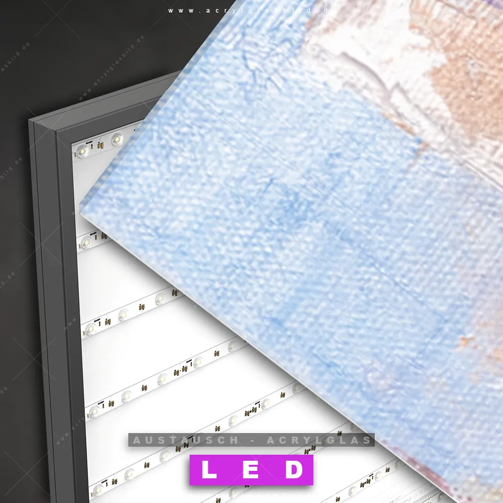 LED Bild mit 5,5cm Bautiefe, homogener Ausleuchtung, Farbtempertursteuerung, dimmbar und mit Fernbedienung.