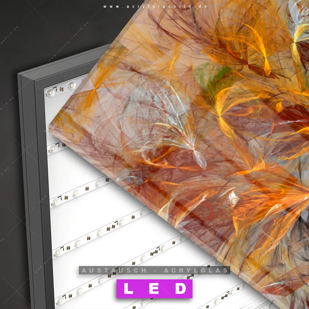 Wechsel-Acrylglas Canvalight® DIA | Abstrakter Blütenzauber in orange | Hochformat