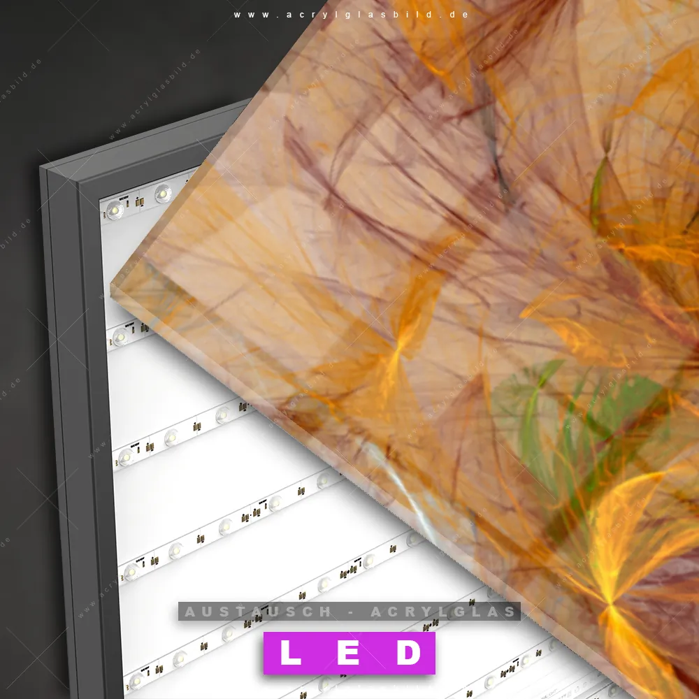 Wechsel-Acrylglas Canvalight® DIA | Abstrakter Blütenzauber in orange | Schmal