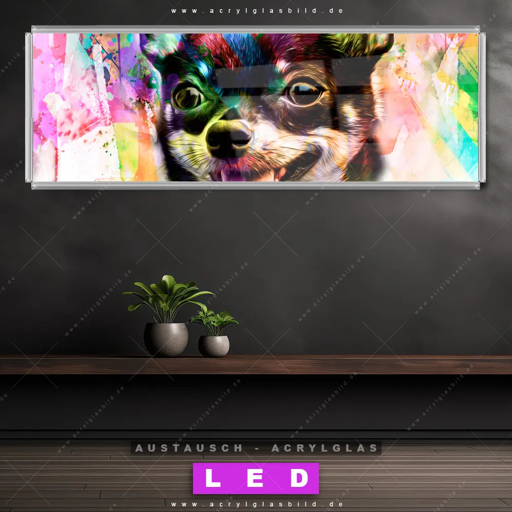 Wechsel-Acrylglas Canvalight® DIA | Abstrakter Chihuahua | Panorama