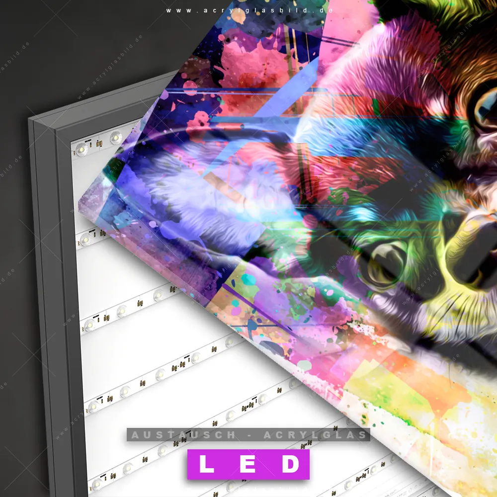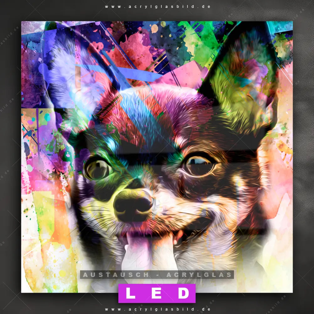 Begriffe wie Chihuahua, Tier, Hund haben dich auf der Suche nach deinem neuen Austausch-Acrylglasbild inspiriert? Dann sollte das Wechsel-Acrylglasbild abstrakter kleiner Hund für dein bereits vorhandenes LED Acrylglasbild Canvalight® DIA den Weg zu dir finden.