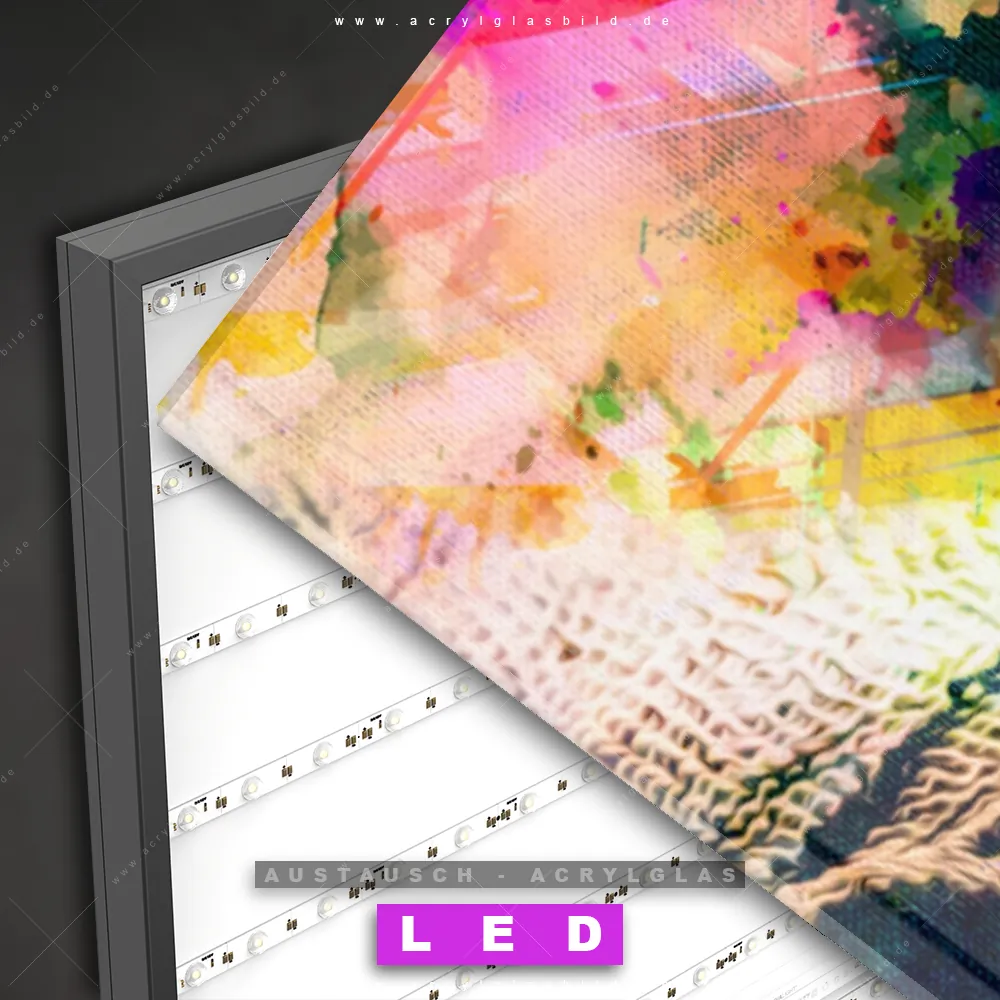 LED Bild mit 5,5cm Bautiefe, homogener Ausleuchtung, Farbtempertursteuerung, dimmbar und mit Fernbedienung.