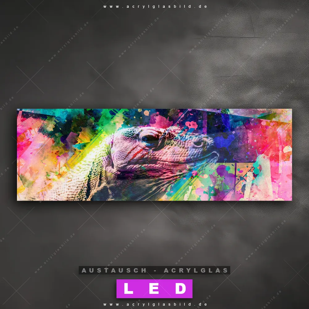 Begriffe wie Leguan, Reptil, Tier haben dich auf der Suche nach deinem neuen Austausch-Acrylglasbild inspiriert? Dann sollte das Wechsel-Acrylglasbild Leguan bunt für dein bereits vorhandenes LED Acrylglasbild Canvalight® DIA den Weg zu dir finden.