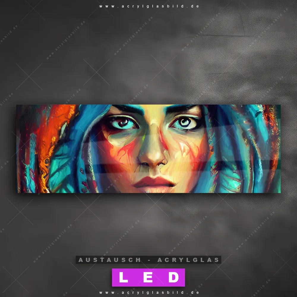 Wechsel-Acrylglas Canvalight® DIA | Abstraktes Frauenporträt Hydra | Panorama
