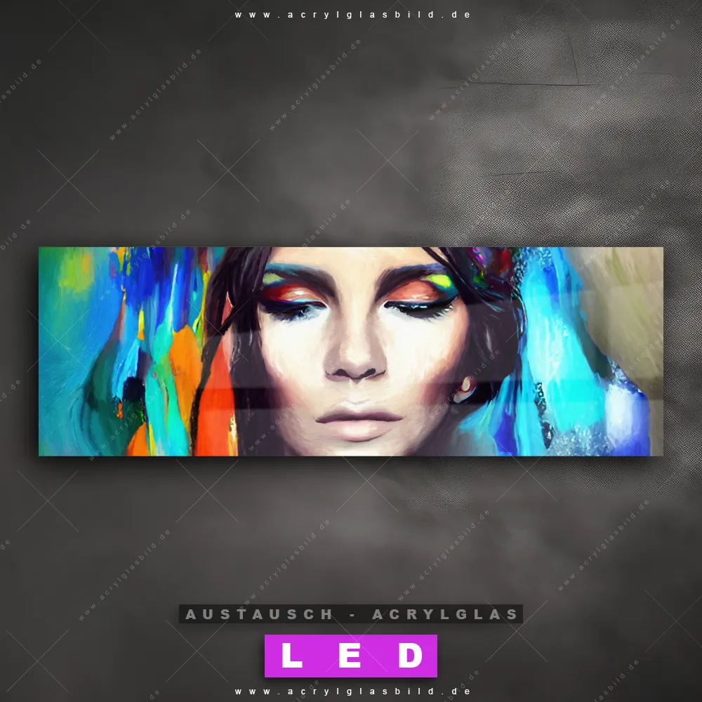 Wechsel-Acrylglas Canvalight® DIA | Abstraktes Frauenporträt Scarlett | Panorama
