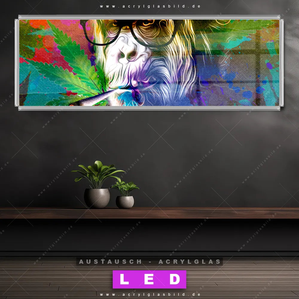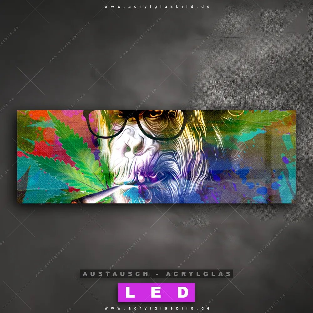Begriffe wie Tier, Affe, Monkey, Brille, Sonnenbrille, cool, Zigarette, rauchen, Cannabis, Piercing haben dich auf der Suche nach deinem neuen Austausch-Acrylglasbild inspiriert? Dann sollte das Wechsel-Acrylglasbild rauchender Affe mit Brille für dein bereits vorhandenes LED Acrylglasbild Canvalight® DIA den Weg zu dir finden.