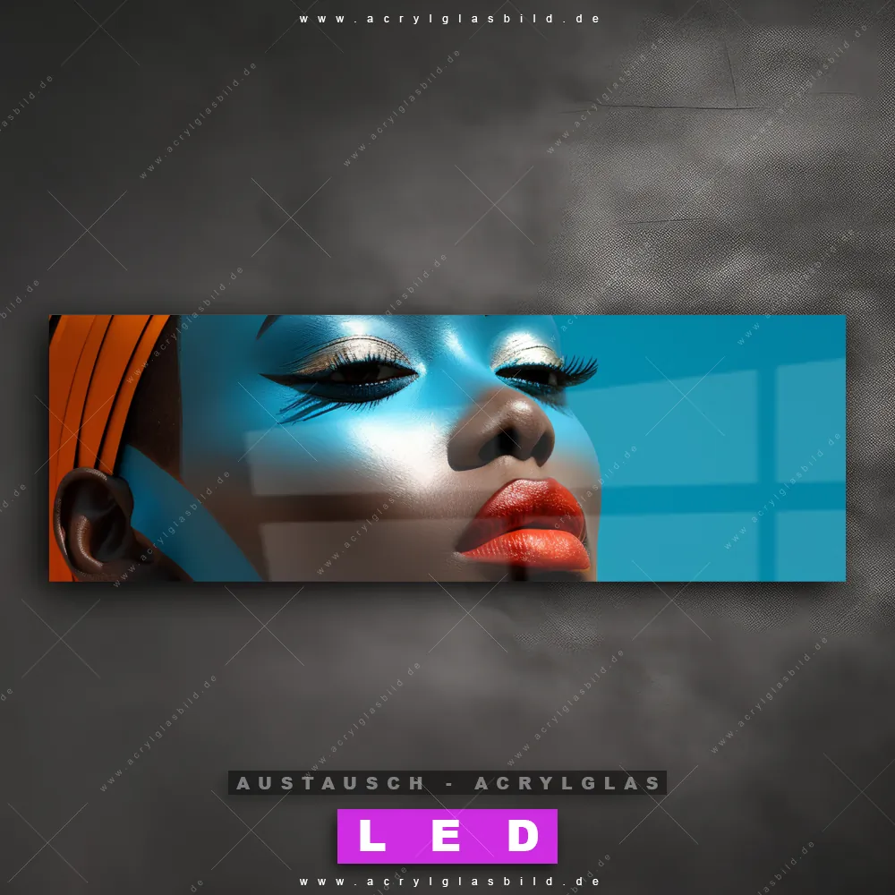 Begriffe wie Afrika, Afrikanische Frau, Kultur, Charakterstärke, Kühnheit haben dich auf der Suche nach deinem neuen Austausch-Acrylglasbild inspiriert? Dann sollte das Wechsel-Acrylglasbild Afrikanische Dame mit roten Lippen für dein bereits vorhandenes LED Acrylglasbild Canvalight® DIA den Weg zu dir finden.