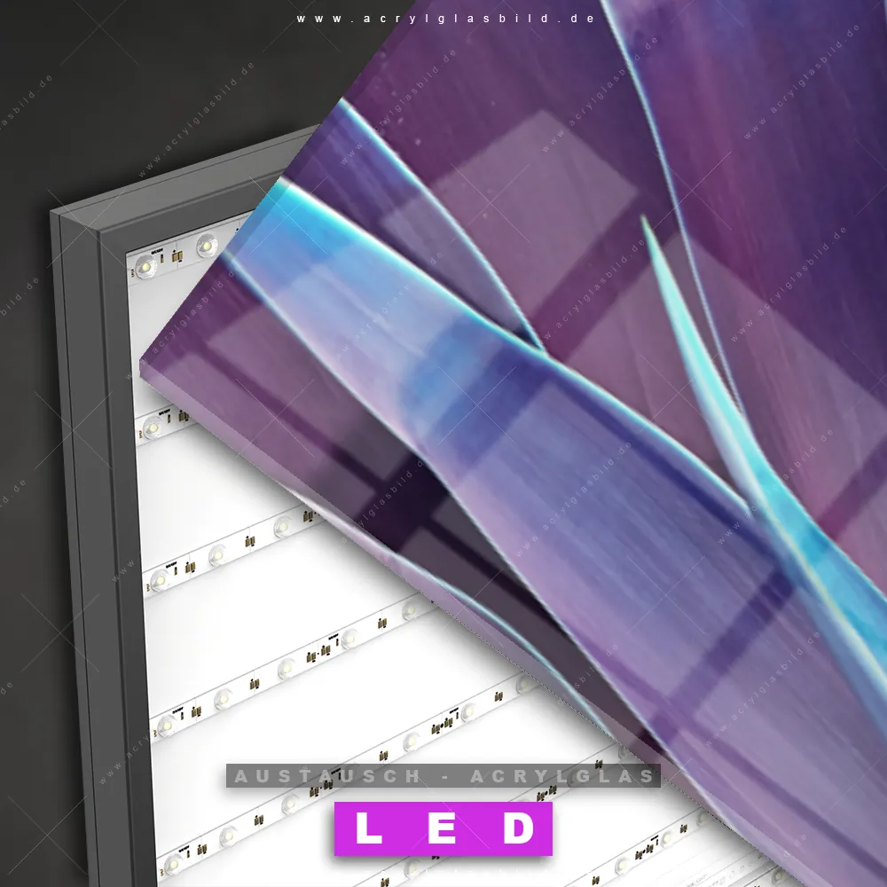Begriffe wie Pflanze, Natur, Kaktus, Nahaufnahme, Vogelperspektive, Draufsicht, Blatt, Blätter, Sukkulente, Agave, Lotusblüte haben dich auf der Suche nach deinem neuen Austausch-Acrylglasbild inspiriert? Dann sollte das Wechsel-Acrylglasbild Blätter einer Agave für dein bereits vorhandenes LED Acrylglasbild Canvalight® DIA den Weg zu dir finden.