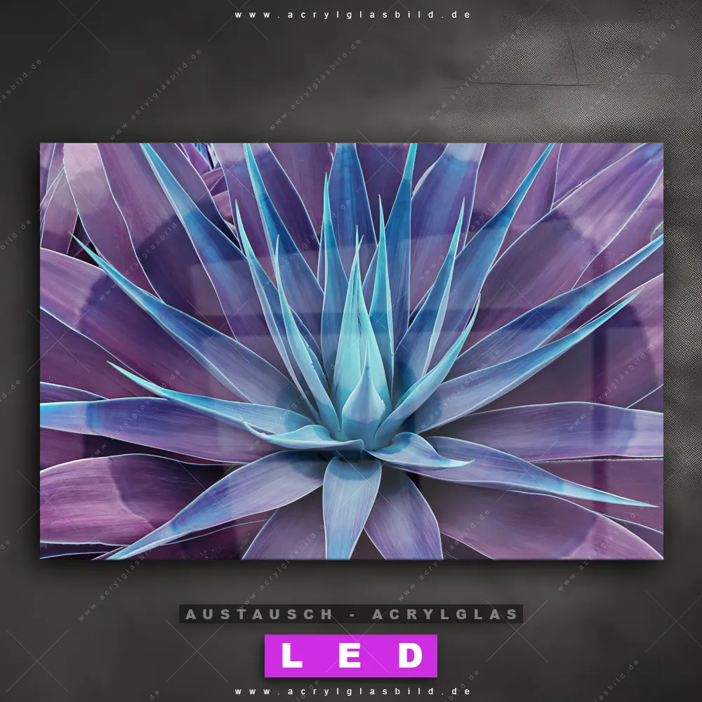 Begriffe wie Pflanze, Natur, Kaktus, Nahaufnahme, Vogelperspektive, Draufsicht, Blatt, Blätter, Sukkulente, Agave, Lotusblüte haben dich auf der Suche nach deinem neuen Austausch-Acrylglasbild inspiriert? Dann sollte das Wechsel-Acrylglasbild Blätter einer Agave für dein bereits vorhandenes LED Acrylglasbild Canvalight® DIA den Weg zu dir finden.