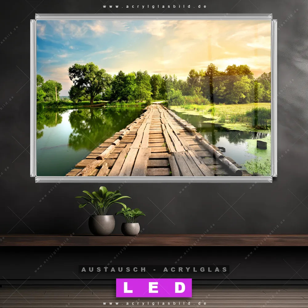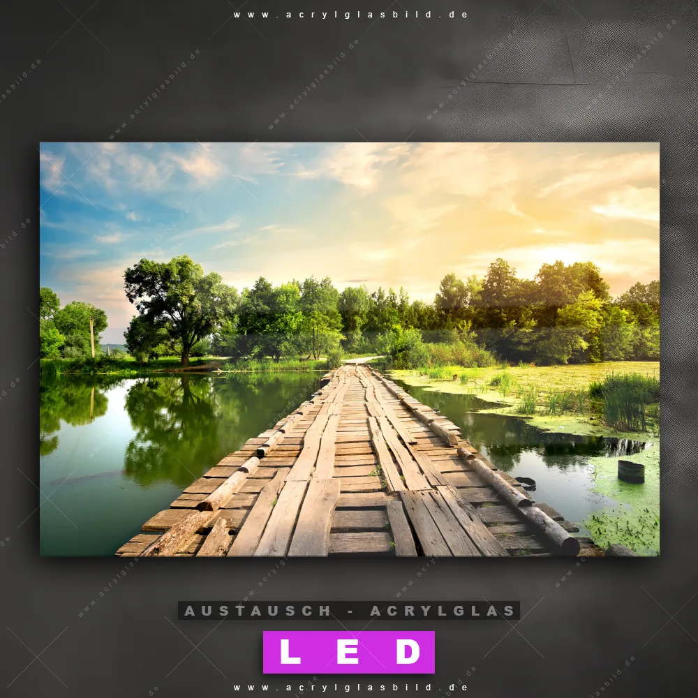 Begriffe wie Sonnenuntergang, Wasser, Fluss, See, Steg, Angeln, Teich, fischen haben dich auf der Suche nach deinem neuen Austausch-Acrylglasbild inspiriert? Dann sollte das Wechsel-Acrylglasbild Holzsteg am Wasser für dein bereits vorhandenes LED Acrylglasbild Canvalight® DIA den Weg zu dir finden.