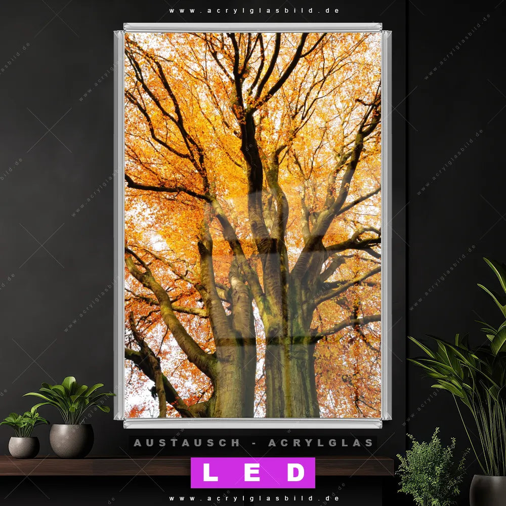 Begriffe wie Wald, Landschaft, Bäume, Natur, Baum, Buche, Ruhe, Stille, Baumkrone, Baumstamm, Herbst haben dich auf der Suche nach deinem neuen Austausch-Acrylglasbild inspiriert? Dann sollte das Wechsel-Acrylglasbild Großer alter Baum für dein bereits vorhandenes LED Acrylglasbild Canvalight® DIA den Weg zu dir finden.
