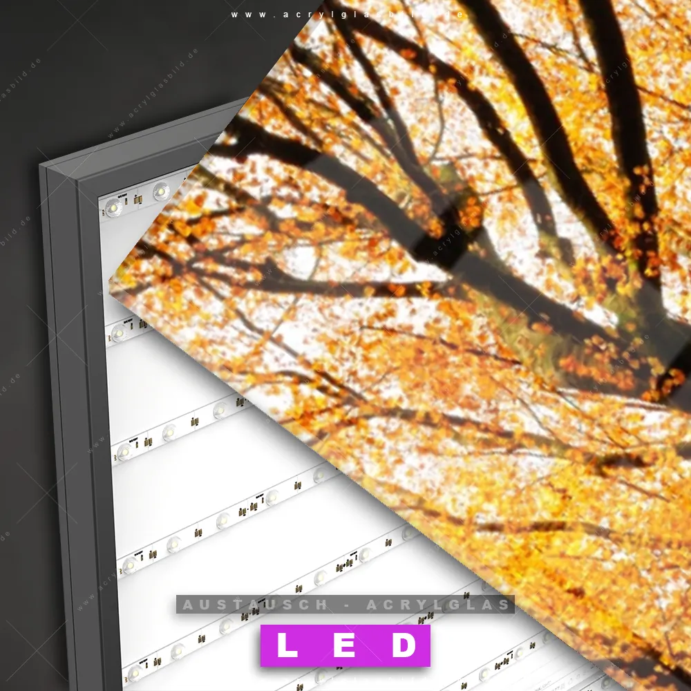 Begriffe wie Wald, Landschaft, Bäume, Natur, Baum, Buche, Ruhe, Stille, Baumkrone, Baumstamm, Herbst haben dich auf der Suche nach deinem neuen Austausch-Acrylglasbild inspiriert? Dann sollte das Wechsel-Acrylglasbild Großer alter Baum für dein bereits vorhandenes LED Acrylglasbild Canvalight® DIA den Weg zu dir finden.
