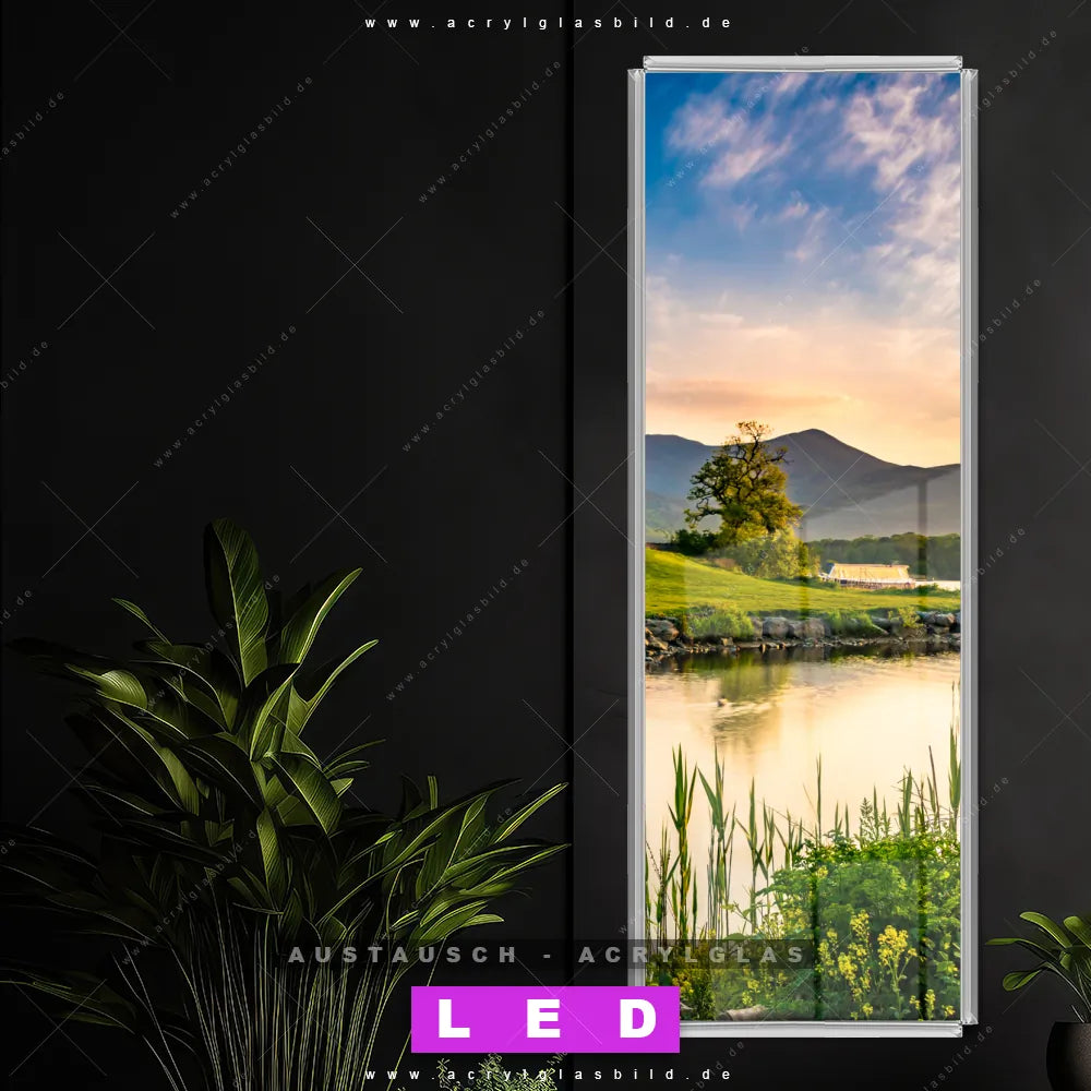 Begriffe wie Schottland, Burg, Festung, Landschaft, See, Fluss haben dich auf der Suche nach deinem neuen Austausch-Acrylglasbild inspiriert? Dann sollte das Wechsel-Acrylglasbild Burg am Abendwasser für dein bereits vorhandenes LED Acrylglasbild Canvalight® DIA den Weg zu dir finden.