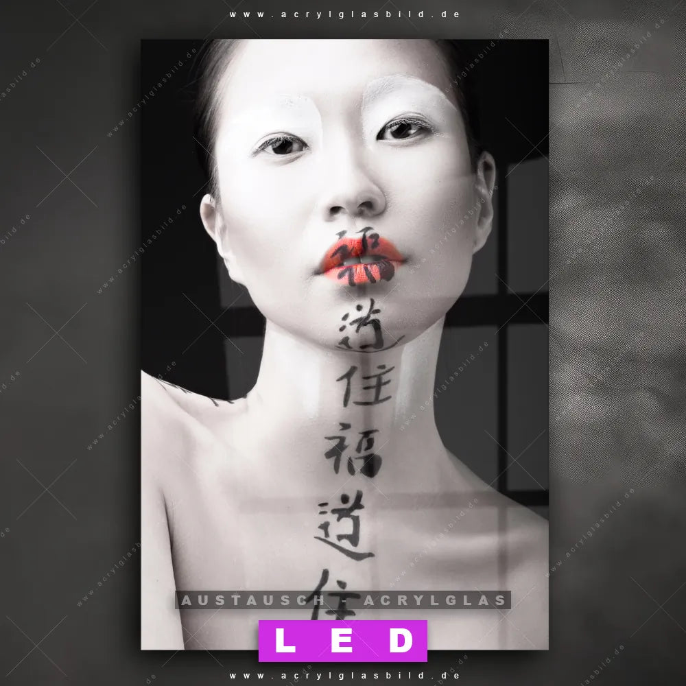 Begriffe wie Frau, Porträt, Erotik, modern, Beauty, Gesicht, Körper, Lippen, asiatisch, Haut, Farbe, Bodypainting haben dich auf der Suche nach deinem neuen Austausch-Acrylglasbild inspiriert? Dann sollte das Wechsel-Acrylglasbild Porträt Asiatin für dein bereits vorhandenes LED Acrylglasbild Canvalight® DIA den Weg zu dir finden.