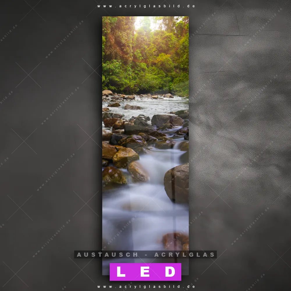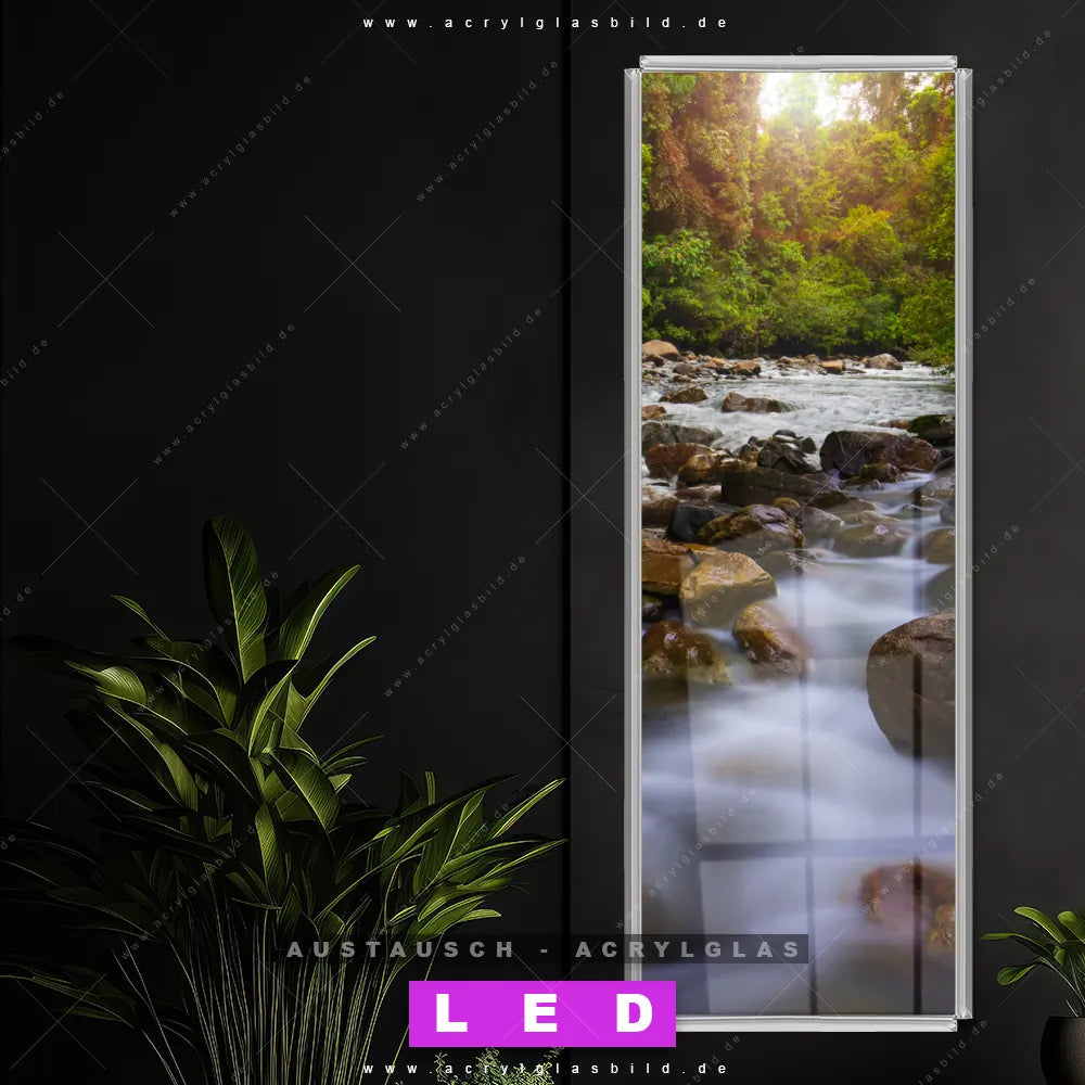 Begriffe wie Dschungel, Fluss, Bach, Steine, Natur, Wald haben dich auf der Suche nach deinem neuen Austausch-Acrylglasbild inspiriert? Dann sollte das Wechsel-Acrylglasbild Dschungel mit Fluss für dein bereits vorhandenes LED Acrylglasbild Canvalight® DIA den Weg zu dir finden.