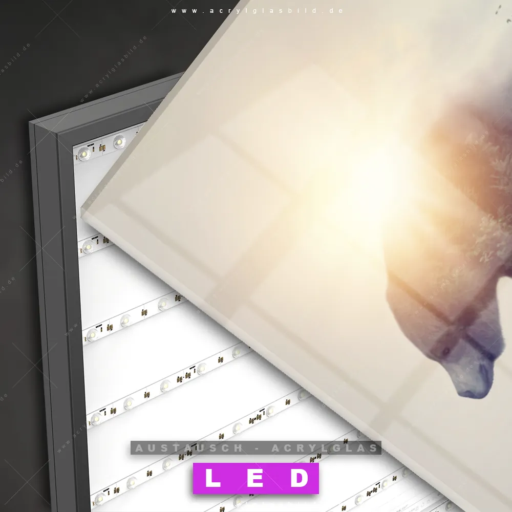 ▶️ ACHTUNG: Du solltest bereits ein LED Acrylglasbild Canvalight® DIA besitzen! ▶️ Acrylglas-Scheibe zum Austauschen ▶️ von hinten bedruckt | 3mm stark ▶️ Acrylglas-Scheibe in Höhe & Breite je 15mm kleiner als angegebenes Maß ▶️ für DIA-Klapprahmen-System zum einfachen Wechseln der Motive ▶️ faszinierender Tiefeneffekt ▶️ nur Acrylglas-Druck ohne Leuchtrahmen