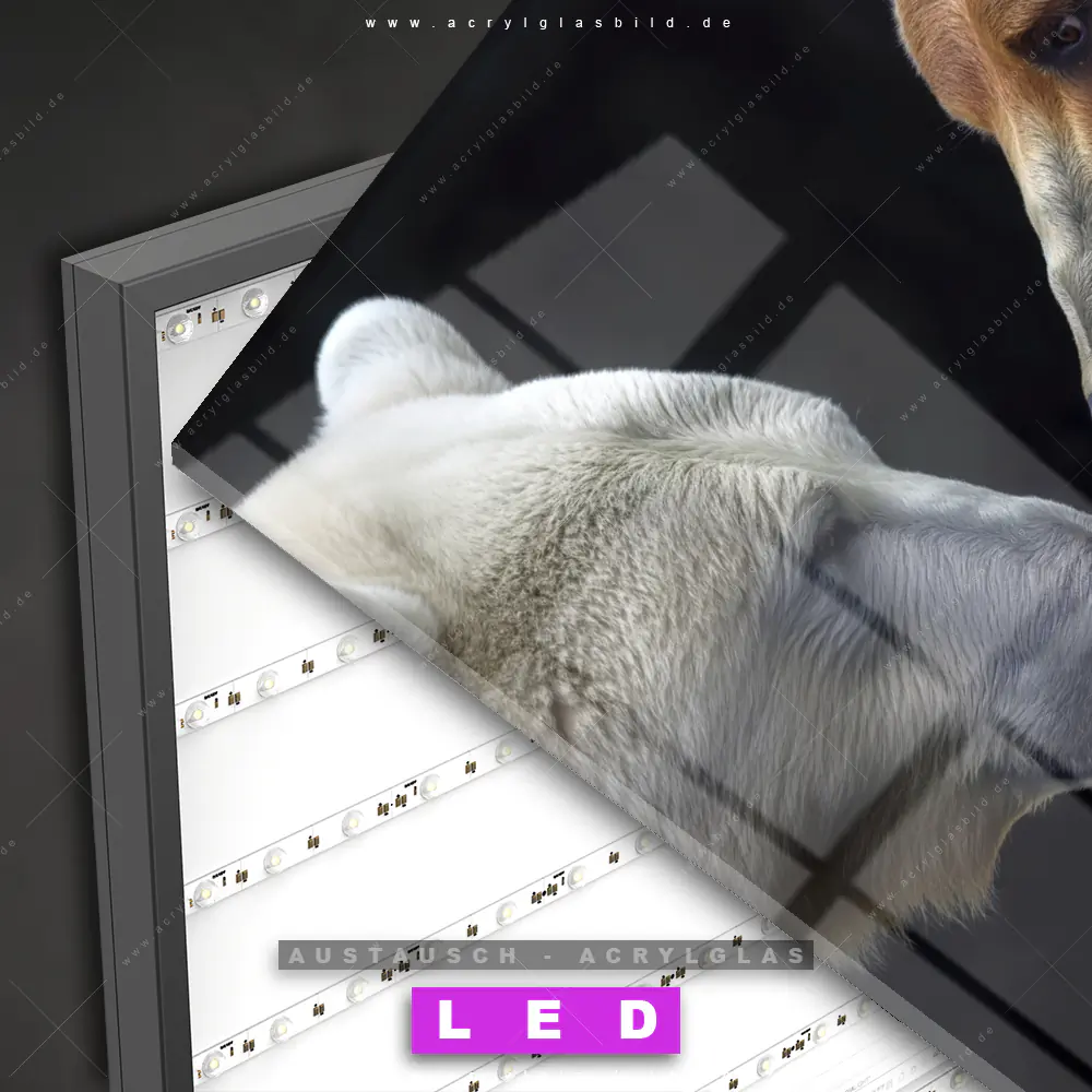 Begriffe wie Bär, Natur, Grizzly, Braunbär, Eisbär, Polarbär, Rivalität, Harmonie, Stärke haben dich auf der Suche nach deinem neuen Austausch-Acrylglasbild inspiriert? Dann sollte das Wechsel-Acrylglasbild Eisbär und Braunbär für dein bereits vorhandenes LED Acrylglasbild Canvalight® DIA den Weg zu dir finden.
