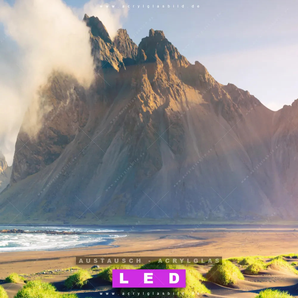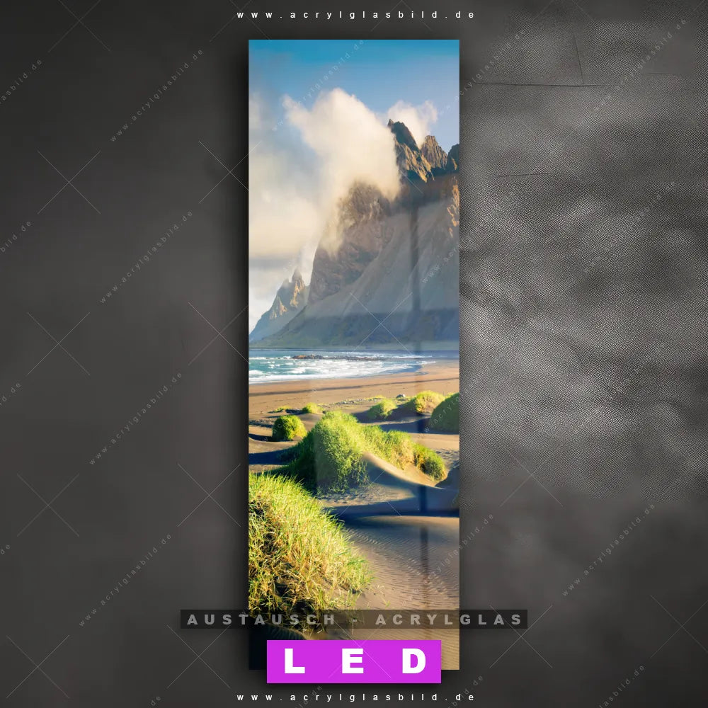 Begriffe wie Modern, Meer, Strand, Sand, Wasser, Island, Urlaub haben dich auf der Suche nach deinem neuen Austausch-Acrylglasbild inspiriert? Dann sollte das Wechsel-Acrylglasbild Felslandschaft am Meer für dein bereits vorhandenes LED Acrylglasbild Canvalight® DIA den Weg zu dir finden.