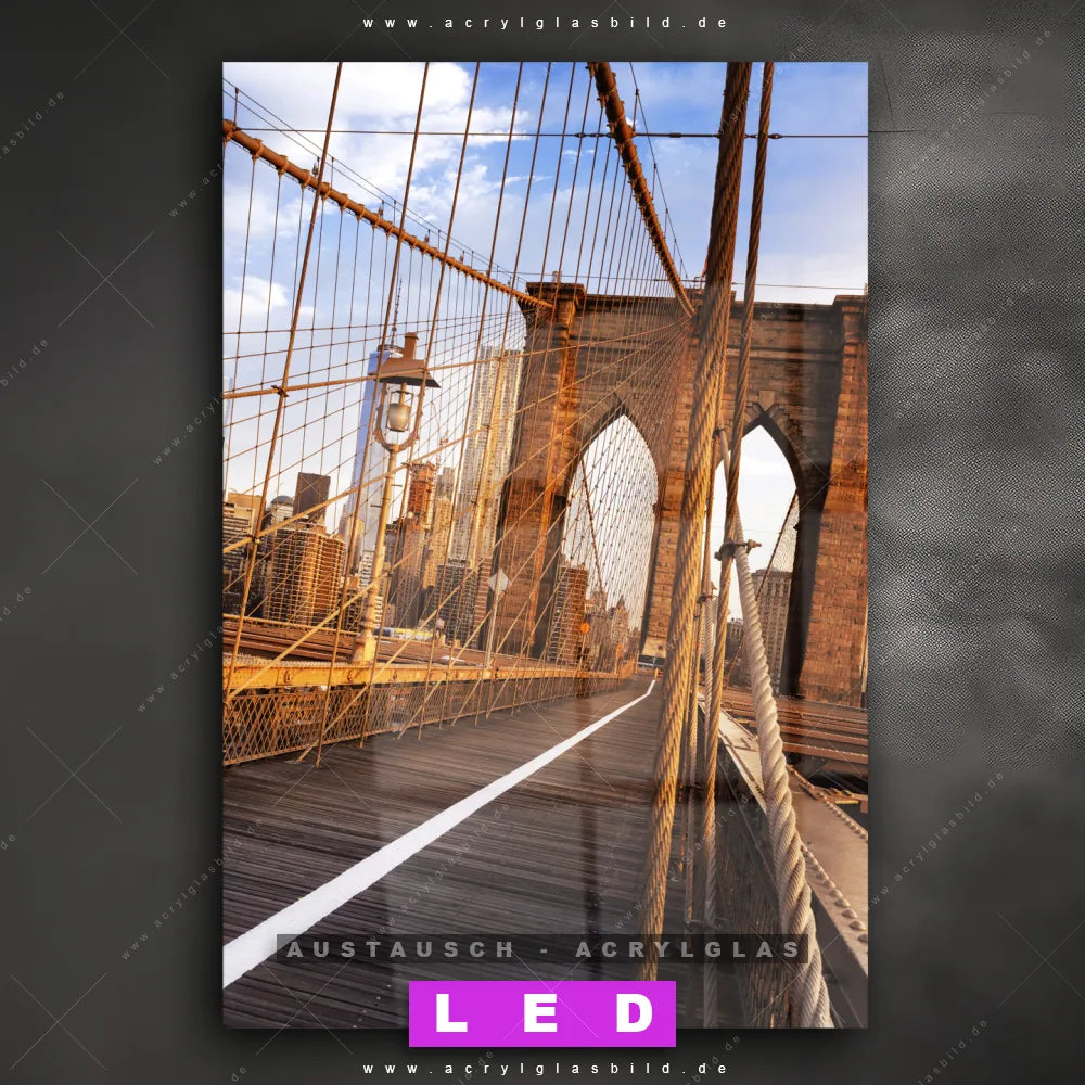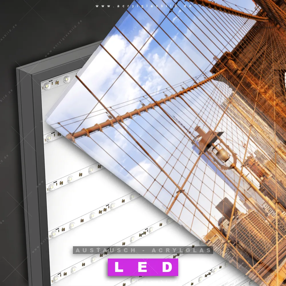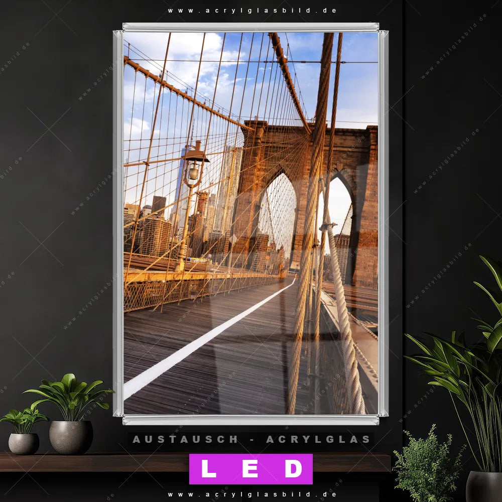 Begriffe wie Brücke, New York City, Skyline, Manhatten, Amerika, New York, USA haben dich auf der Suche nach deinem neuen Austausch-Acrylglasbild inspiriert? Dann sollte das Wechsel-Acrylglasbild amerikanische Brücke für dein bereits vorhandenes LED Acrylglasbild Canvalight® DIA den Weg zu dir finden.