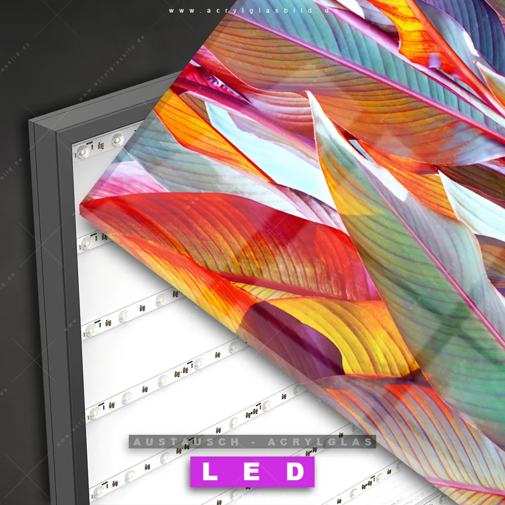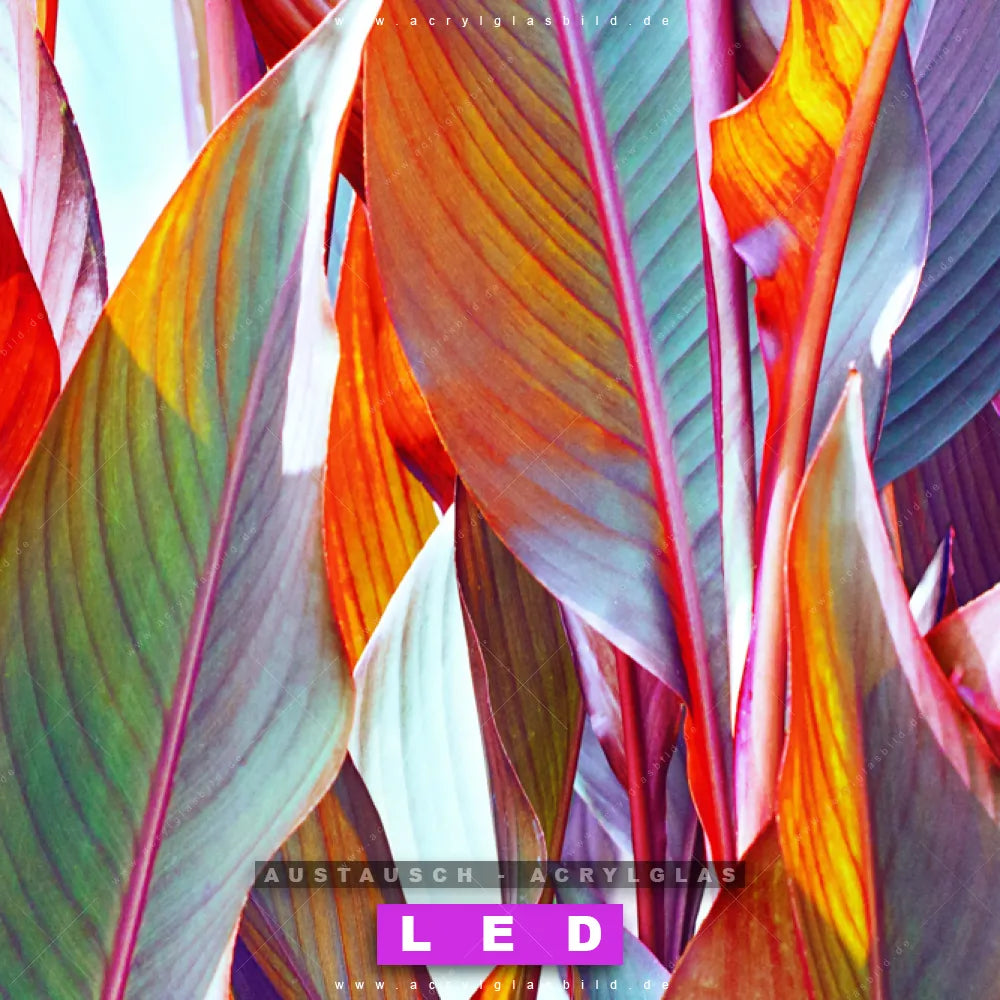Begriffe wie Blätter, Pflanze, Natur, Nahaufnahme, Blatt, Laub haben dich auf der Suche nach deinem neuen Austausch-Acrylglasbild inspiriert? Dann sollte das Wechsel-Acrylglasbild Bunte, lange Blätter für dein bereits vorhandenes LED Acrylglasbild Canvalight® DIA den Weg zu dir finden.