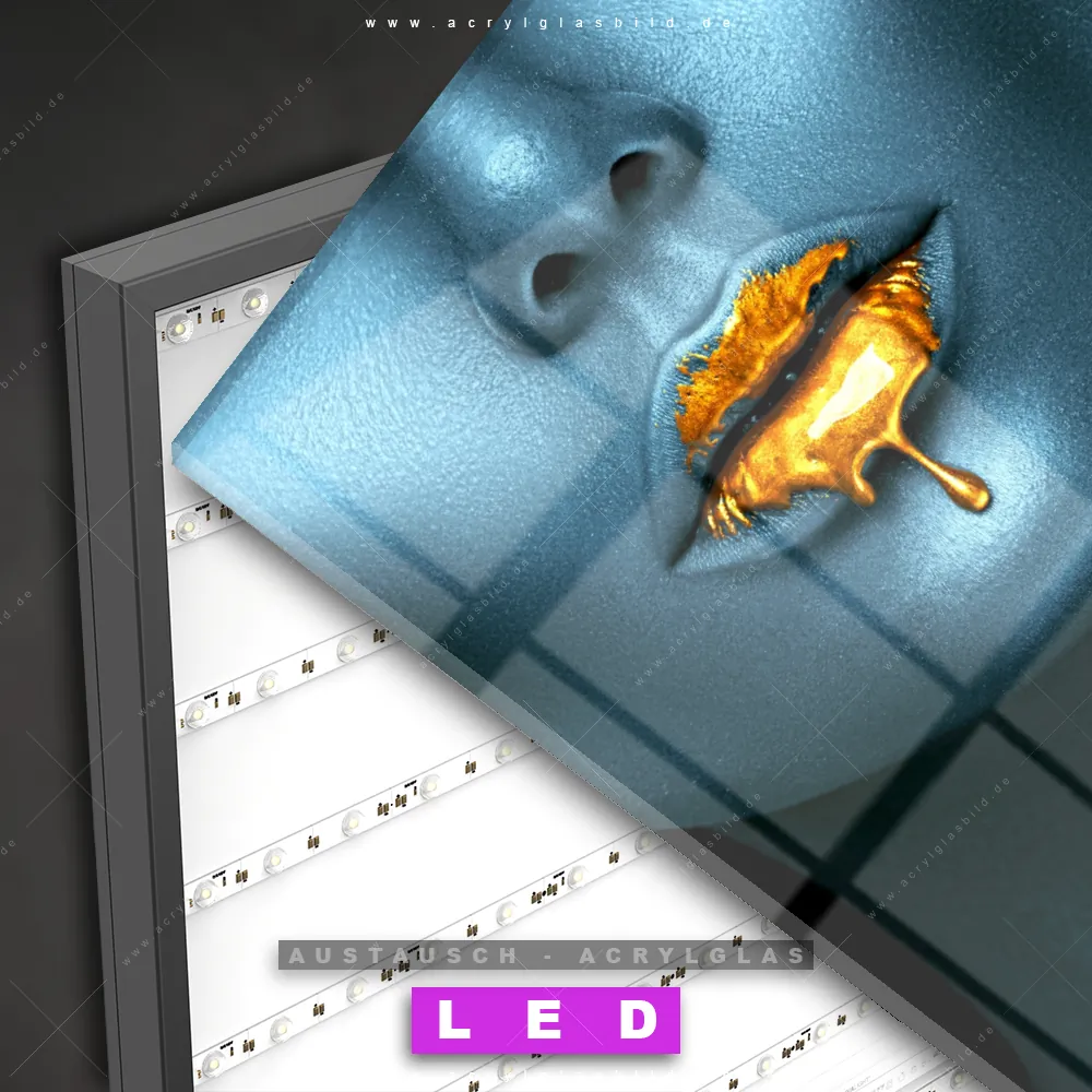 Begriffe wie Frau, Lippen, Mund, Porträt, Farbe, Beauty haben dich auf der Suche nach deinem neuen Austausch-Acrylglasbild inspiriert? Dann sollte das Wechsel-Acrylglasbild Blaue Haut für dein bereits vorhandenes LED Acrylglasbild Canvalight® DIA den Weg zu dir finden.