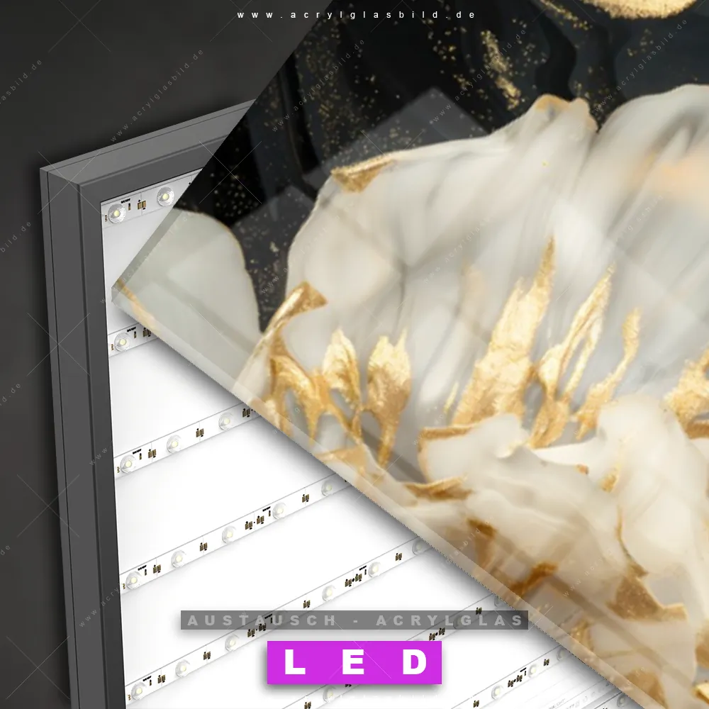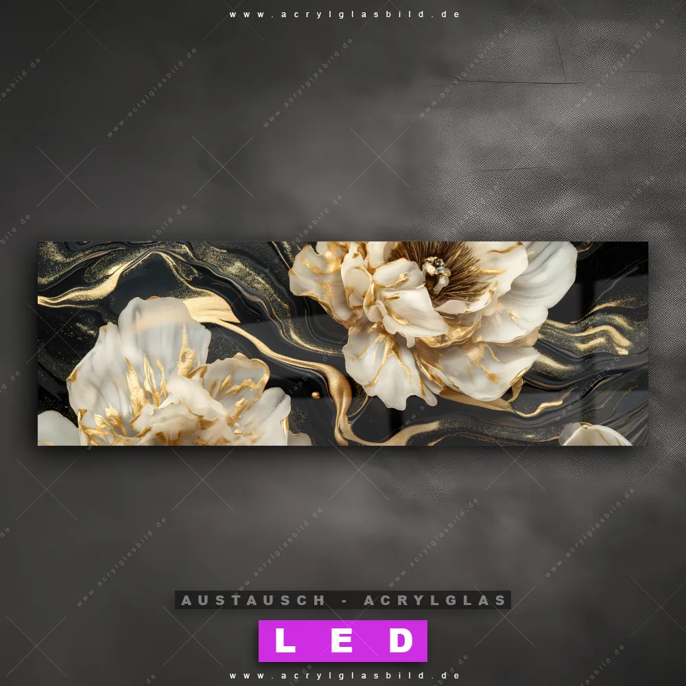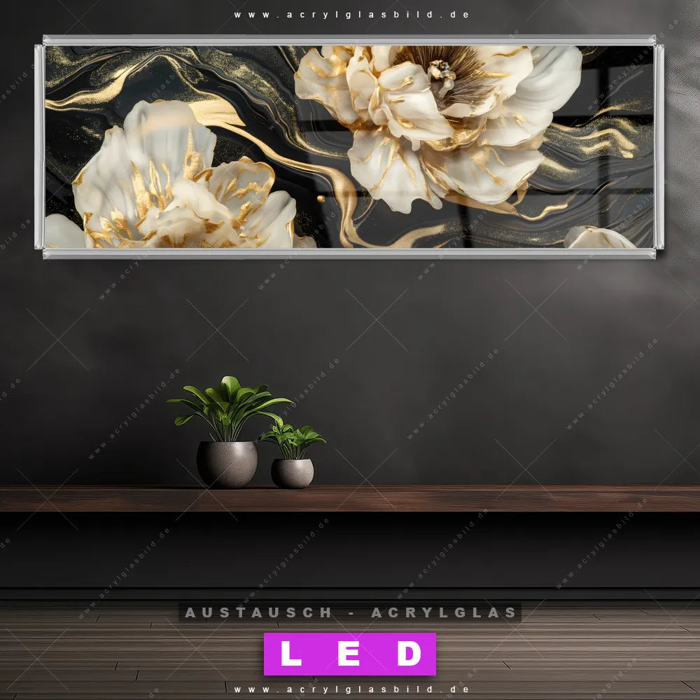 Wechsel-Acrylglas Canvalight® DIA | Blüten Gold Weiß Schwarz | Panorama