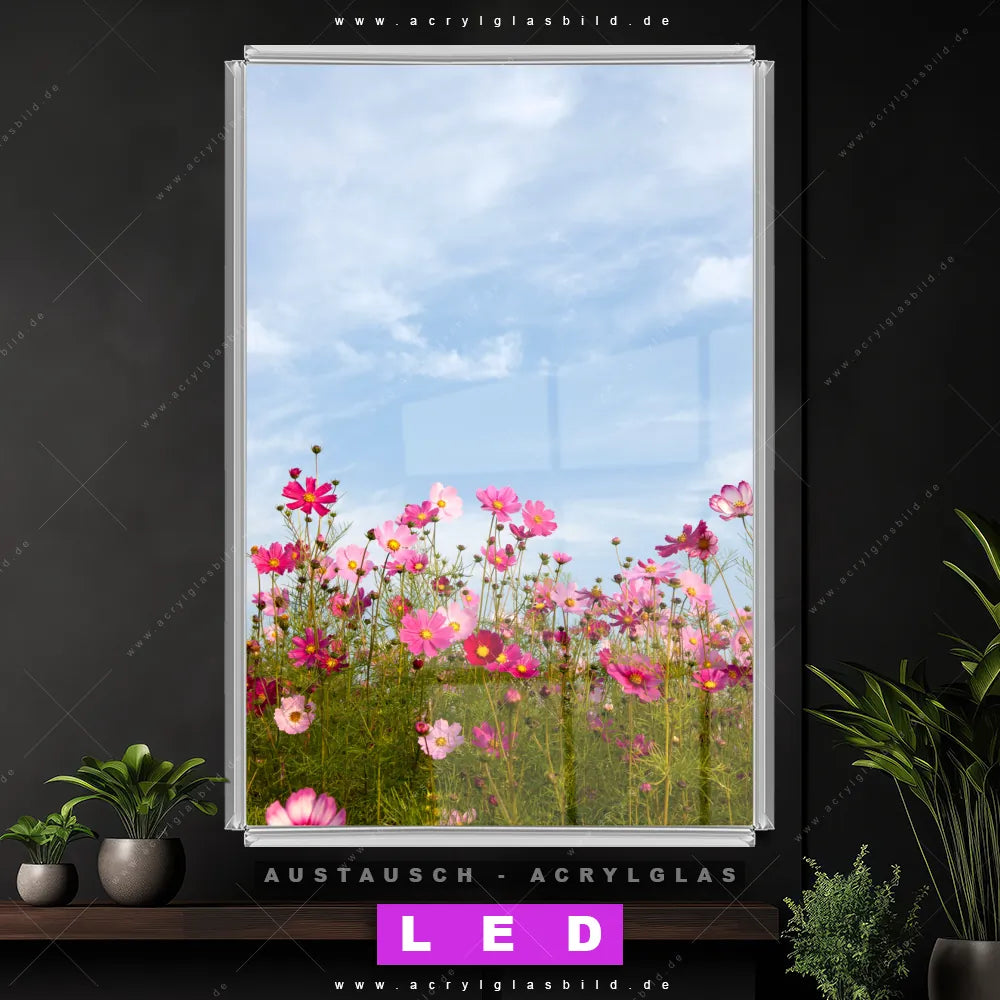 Begriffe wie Natur, Wiese, Feld, Blumen, Blüten, Garten haben dich auf der Suche nach deinem neuen Austausch-Acrylglasbild inspiriert? Dann sollte das Wechsel-Acrylglasbild Pinke und rosafarbene Feldblumen für dein bereits vorhandenes LED Acrylglasbild Canvalight® DIA den Weg zu dir finden.