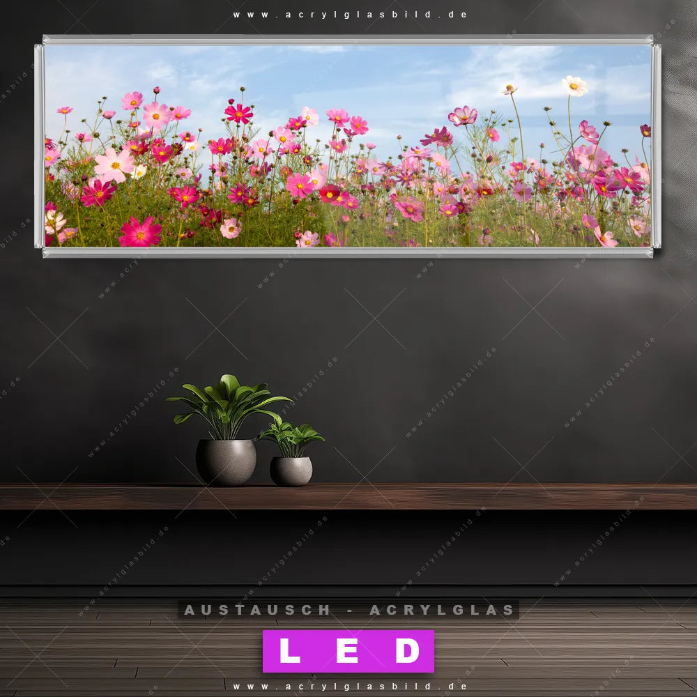 Begriffe wie Natur, Wiese, Feld, Blumen, Blüten, Garten haben dich auf der Suche nach deinem neuen Austausch-Acrylglasbild inspiriert? Dann sollte das Wechsel-Acrylglasbild Pinke und rosafarbene Feldblumen für dein bereits vorhandenes LED Acrylglasbild Canvalight® DIA den Weg zu dir finden.