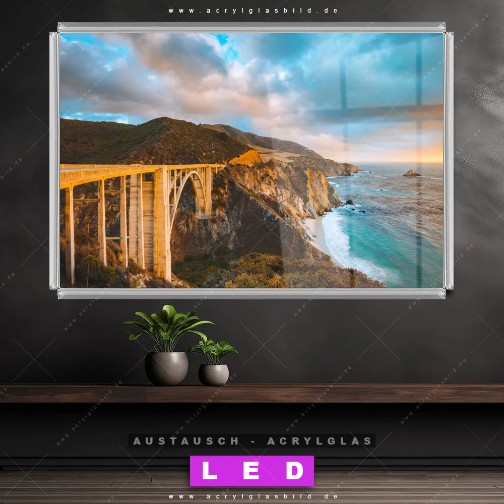 Wechsel-Acrylglas Canvalight® DIA | Brücke an der Küste | Querformat