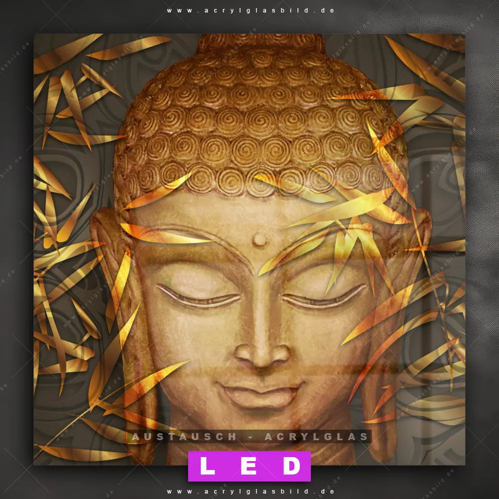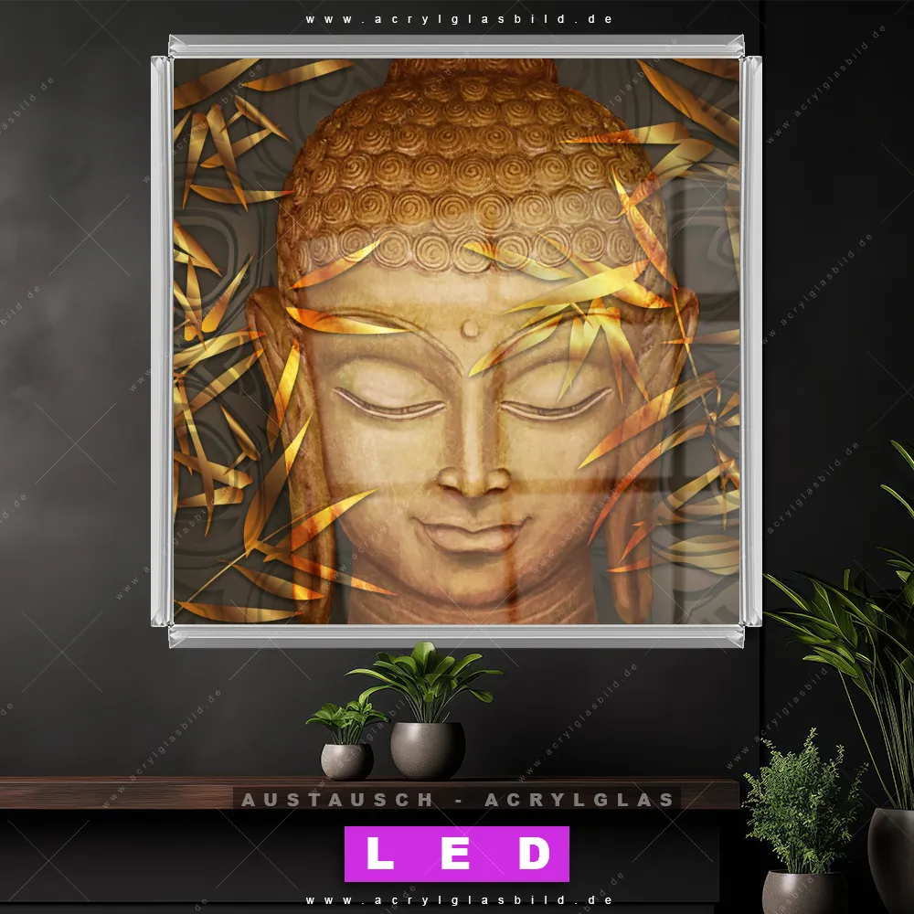 Wechsel-Acrylglas Canvalight® DIA | Buddha & Bambus in Gold | Quadrat