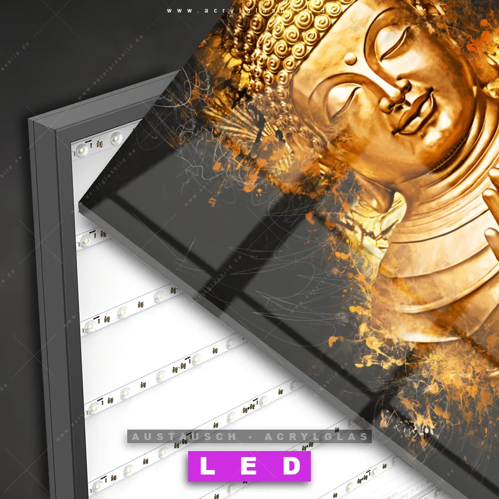 Wechsel-Acrylglas Canvalight® DIA | Buddha Golden Splash | Quadrat